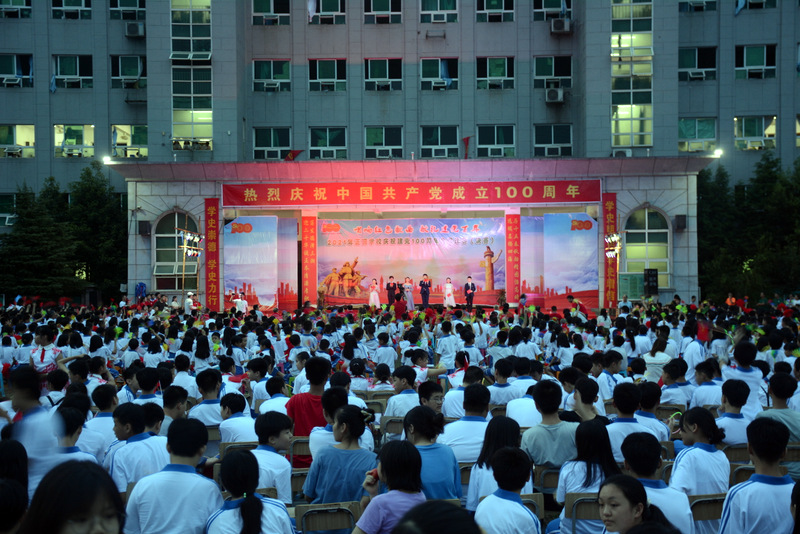 6月28日晚间,各年级分赛场冠军班级在教学楼大厅舞台前跃跃欲试,准备一展歌喉,献礼中国共产党百年华诞。万余名正源师生在正源广场汇集一堂,翘首以盼。市教育局党委副书记、副局长曹寿昌,教育局派驻正源党支部第一书记卜嗣盛,及正源校长罗湘云、校党支部书记毛小波等校领导及各年级主任出席活动。