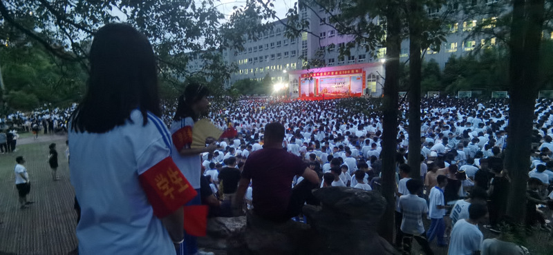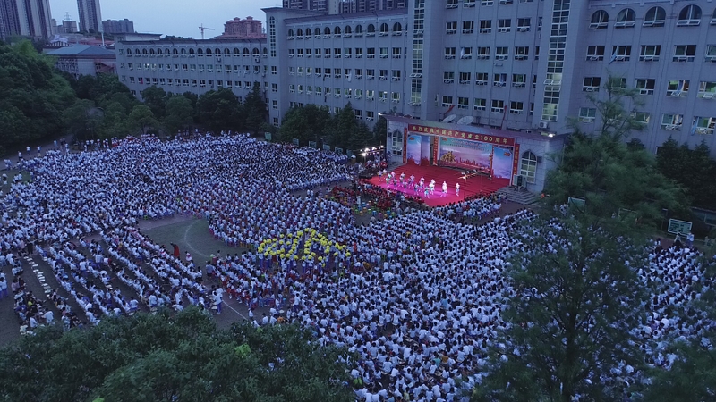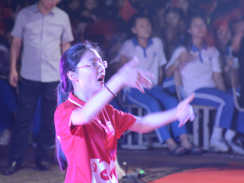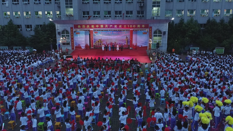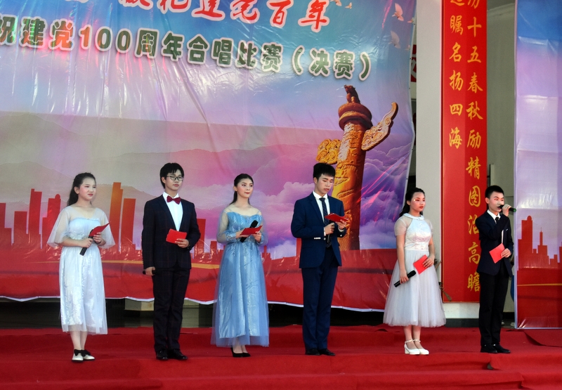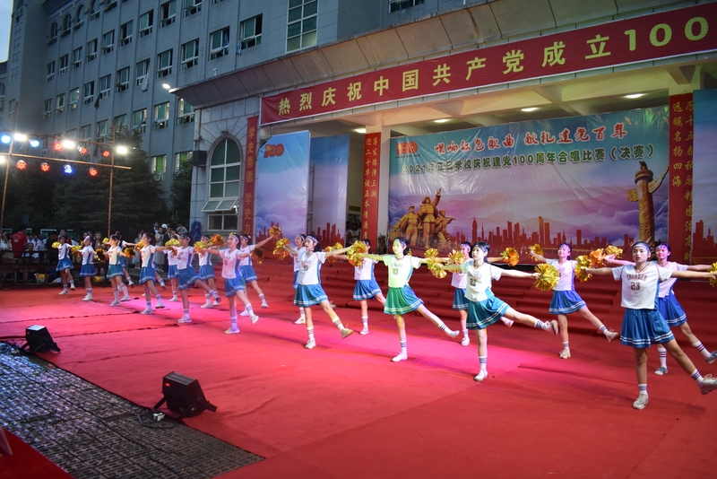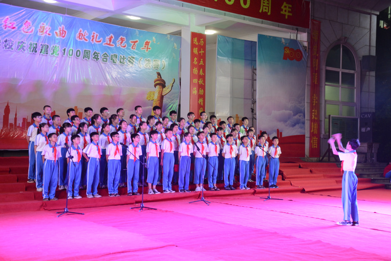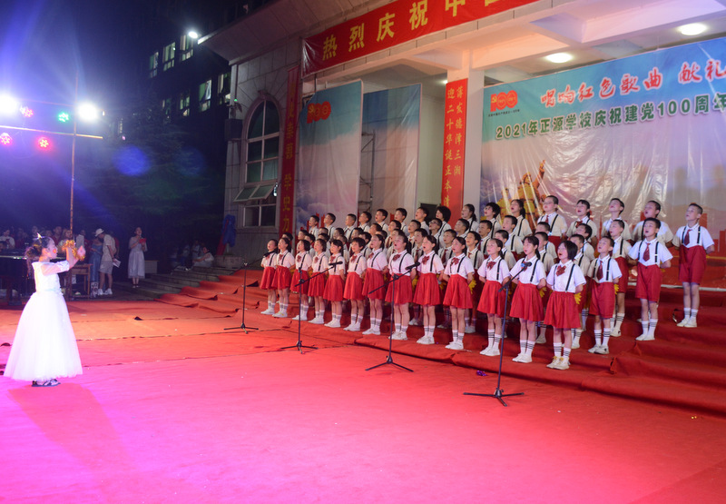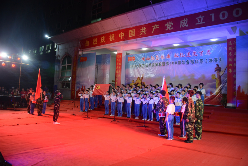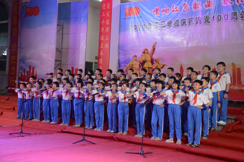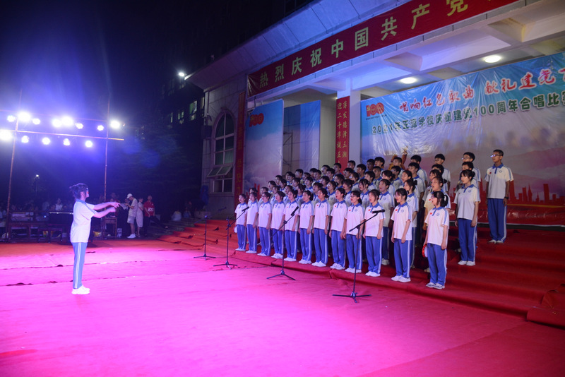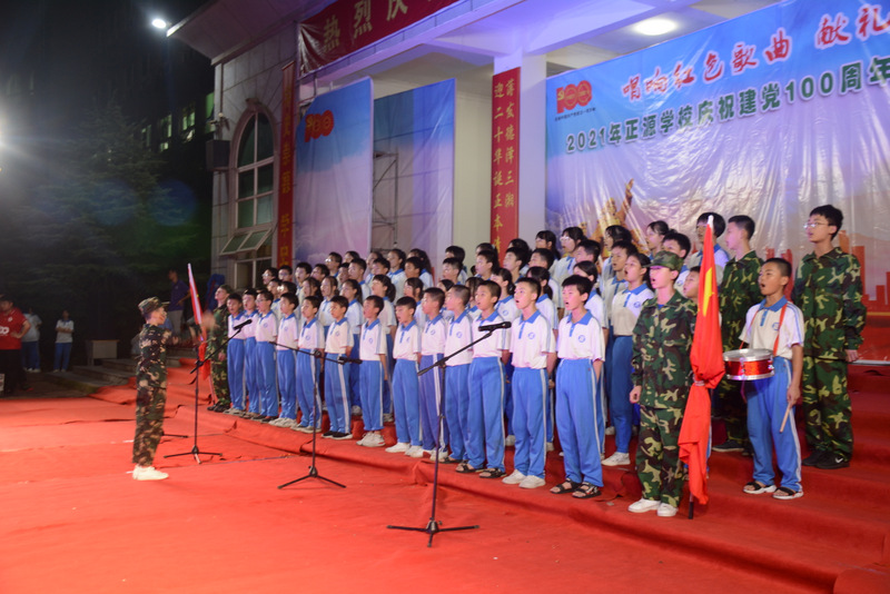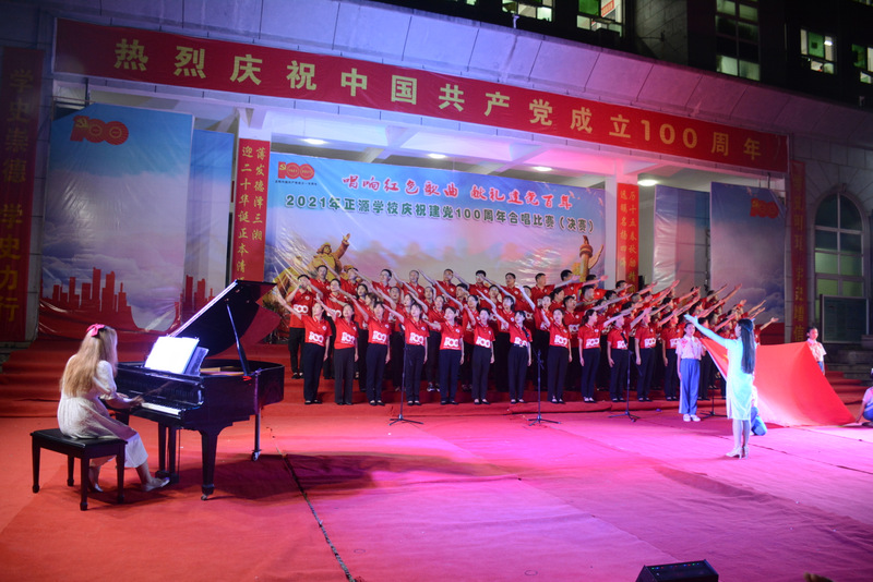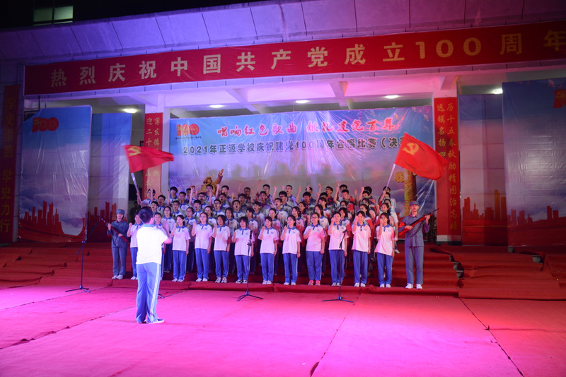 9点,各年级参赛队伍演唱完毕,评委老师紧锣密鼓统分评选,党员教师组成的正源之声青年教师合唱团压轴演唱《我和我的祖国》、《我宣誓》,将活动气氛推向高潮。最后,罗校长带领全场万余名师生全体起立,再次唱响《没有共产党就没有新中国》,用慷慨激昂的万人大合唱致敬建党百年,用发自肺腑的赤子心声歌颂党的伟大功绩,歌颂民族复兴历史进程。