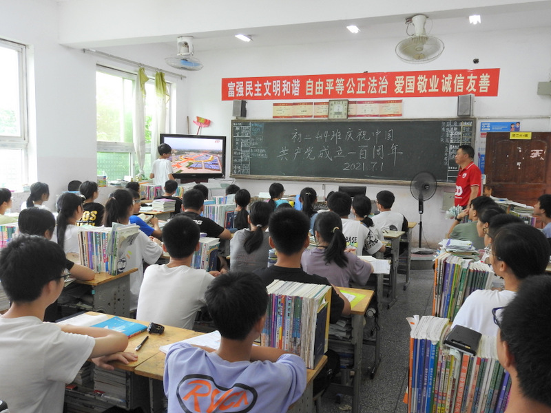 准初一年级李海斌老师说:“我们看到了中国共产党的艰难历程,也感受到了新中国来之不易,更要感谢中国共产党带领我们走向中华民族的伟大复兴。”