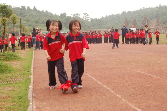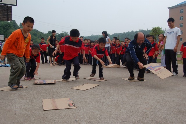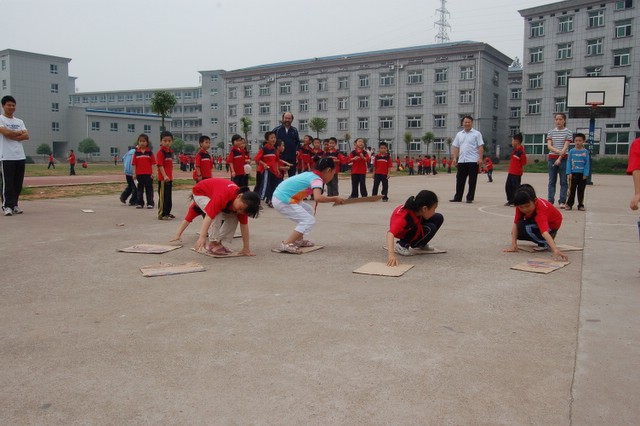 昨天,小学部的孩子们,兴高采烈地迎来了自己的节日--六一儿童节。在这一天里,举行了画展及丰富多彩的游艺活动,如投球入纸篓(学前班)、绑腿跑、踩纸板过河、螃蟹搬家、投垒球等,老师们以及罗校长、刘主任也和同学们一起参与了活动。