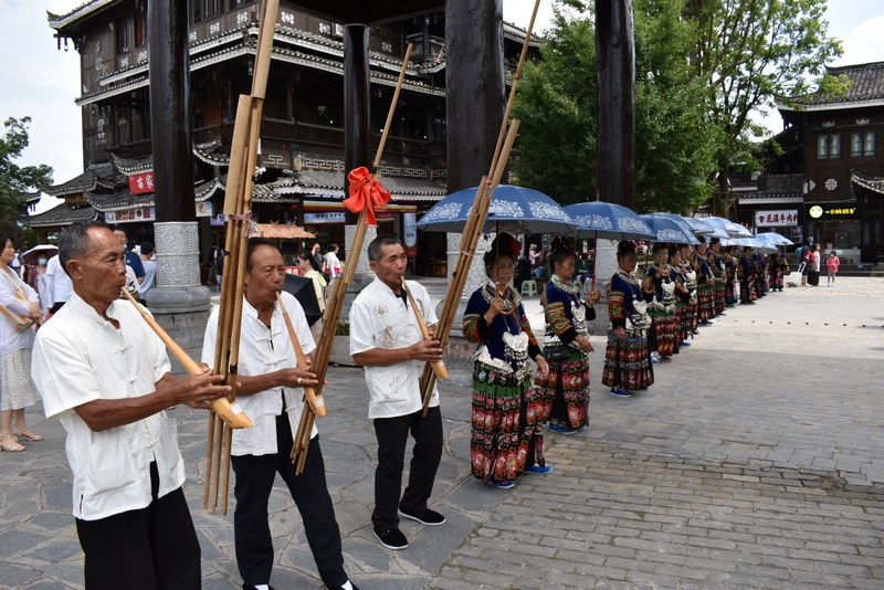 芦笙奏乐 苗族阿妹载歌载舞迎来宾
