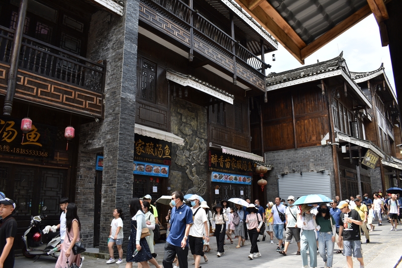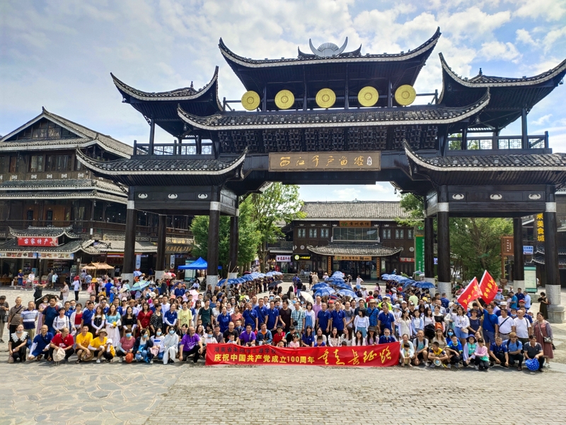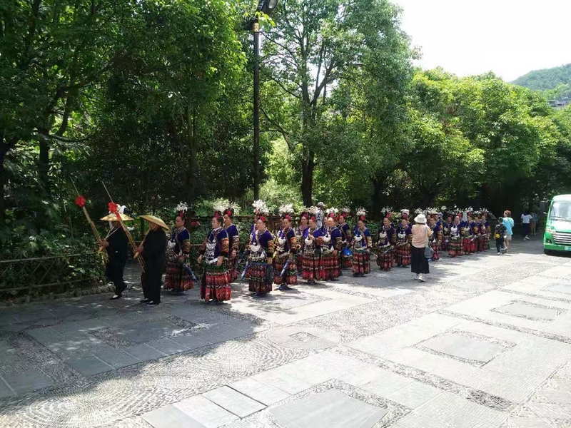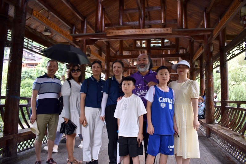 中餐过后,老师们分头游览苗寨里的吊脚楼、风雨桥、白水河、观景台等各处景观,参观购物、闲庭漫步,各得其所、其乐融融。