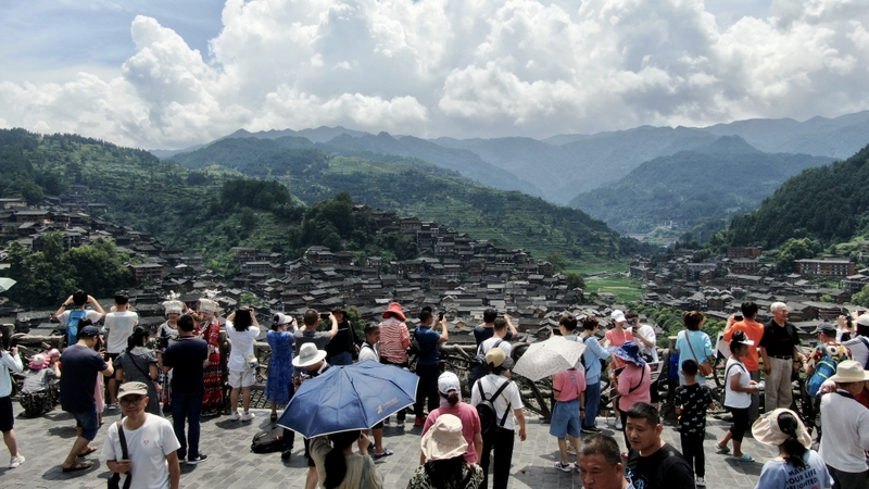 经过苗族美神“仰阿莎”巨型雕像之后,很快到达了今天的目的地——西江千户苗寨。“用美丽回答一切,看西江知天下苗寨。”这是著名作家余秋雨对西江千户苗寨的赞美。这里是中国最大、世界无双的天下第一大苗寨,风景如画,苗韵悠长,享有“中国苗都”之美誉。