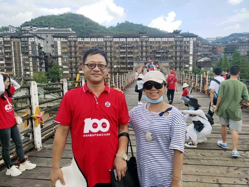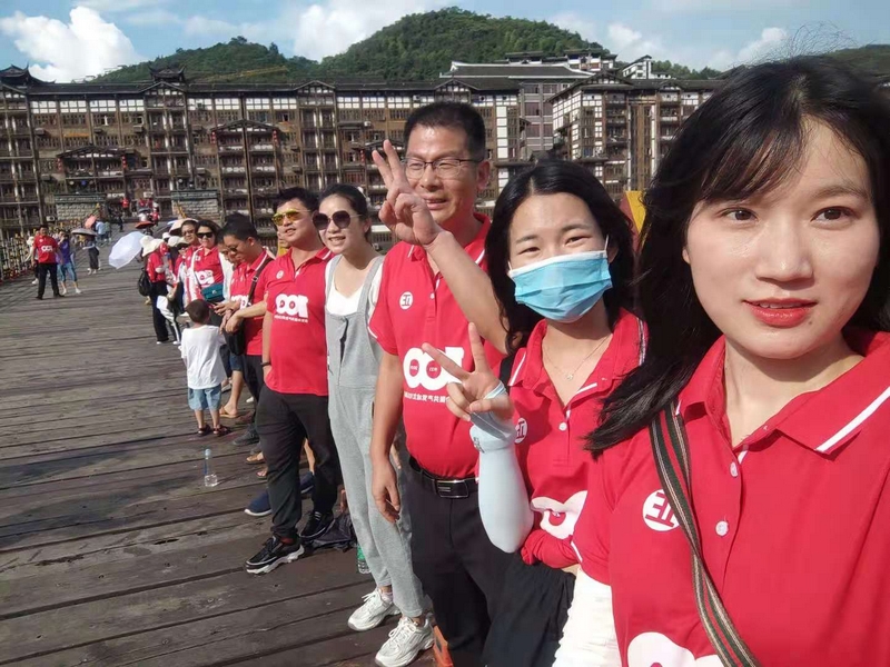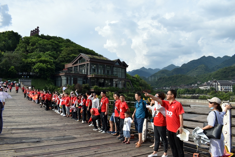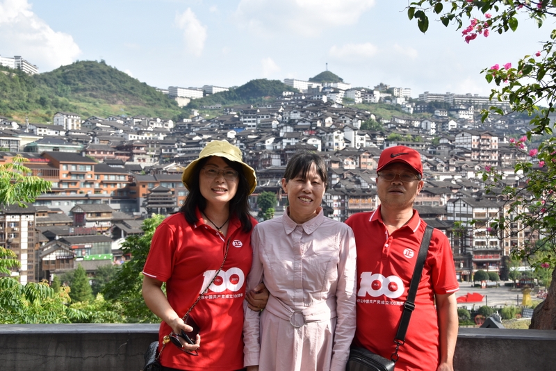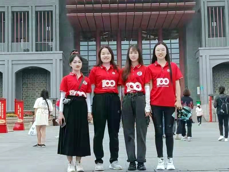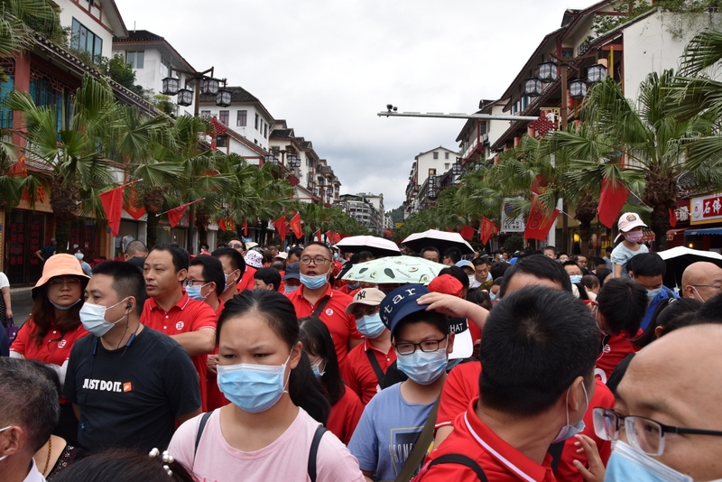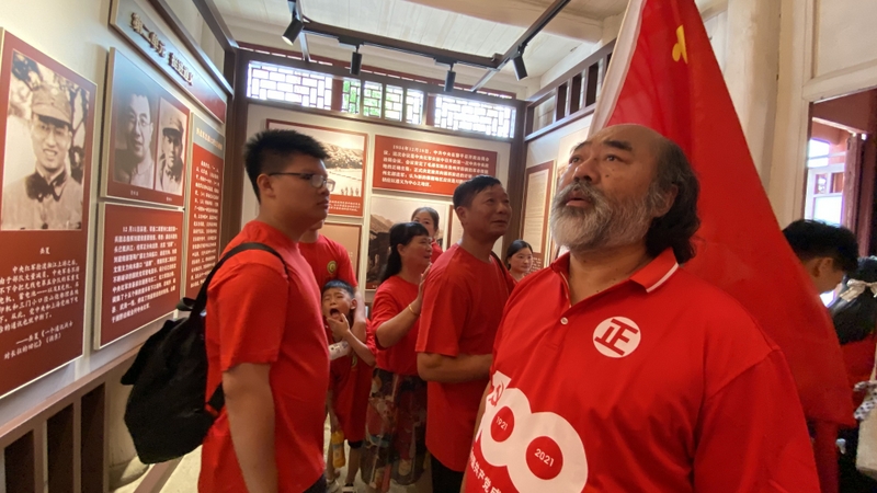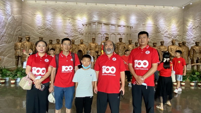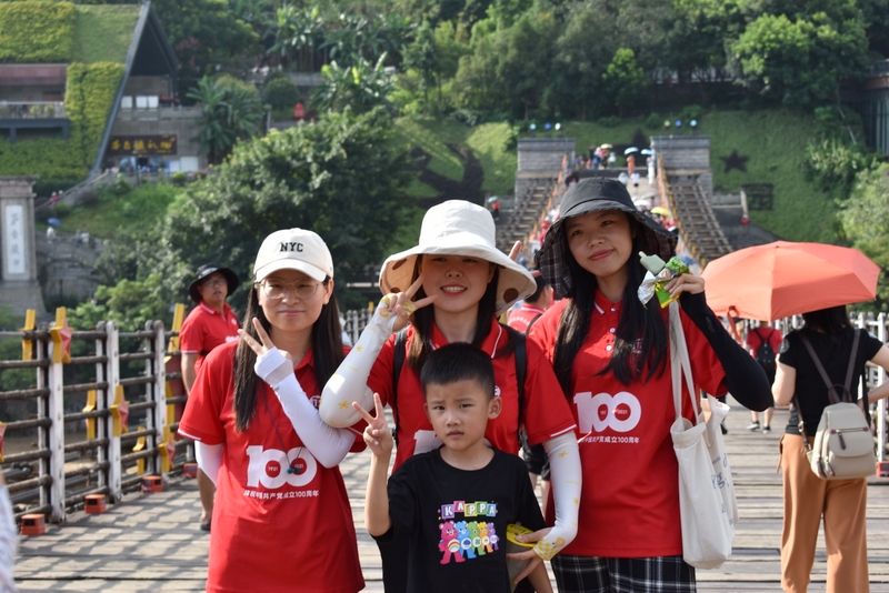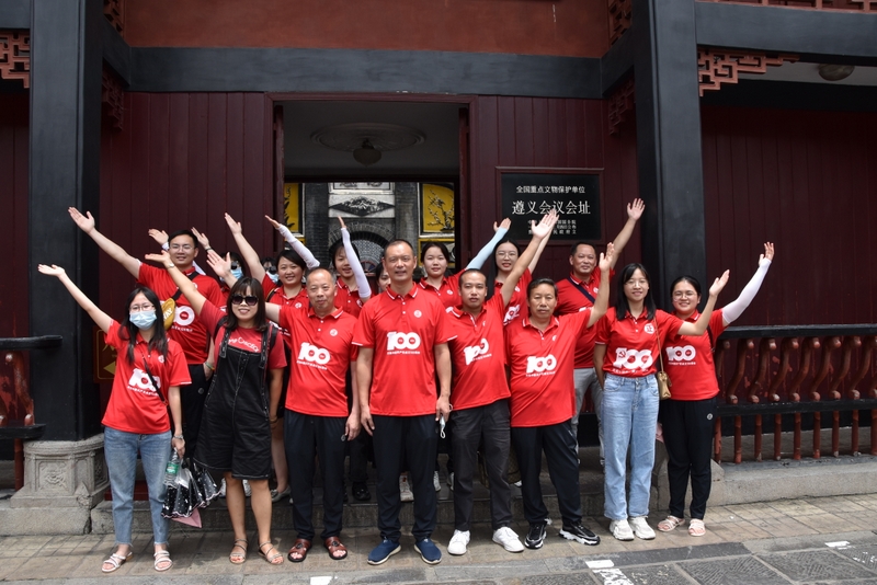 下车径直来到遵义会议纪念馆,红色7月又逢建党百年华诞,纪念馆前人山人海,来自全国各地的游客接踵摩肩,正在排队等候入场。300余名统一身着火红定制T恤的正源老师汇入其中,齐刷刷一片亮眼的"正源红"成了这片红色景点门口一道光彩夺目的美丽风景线。