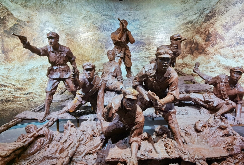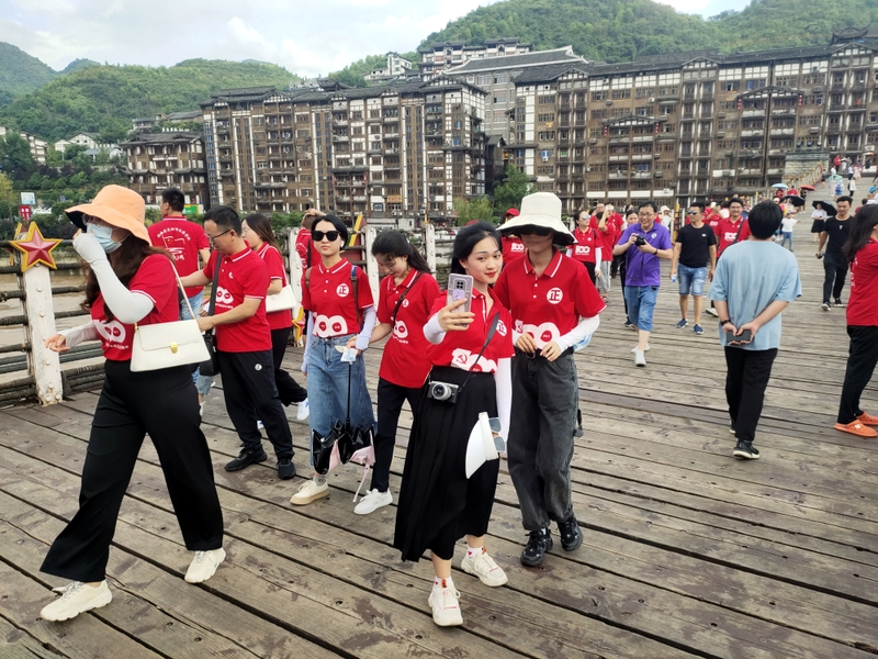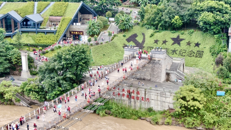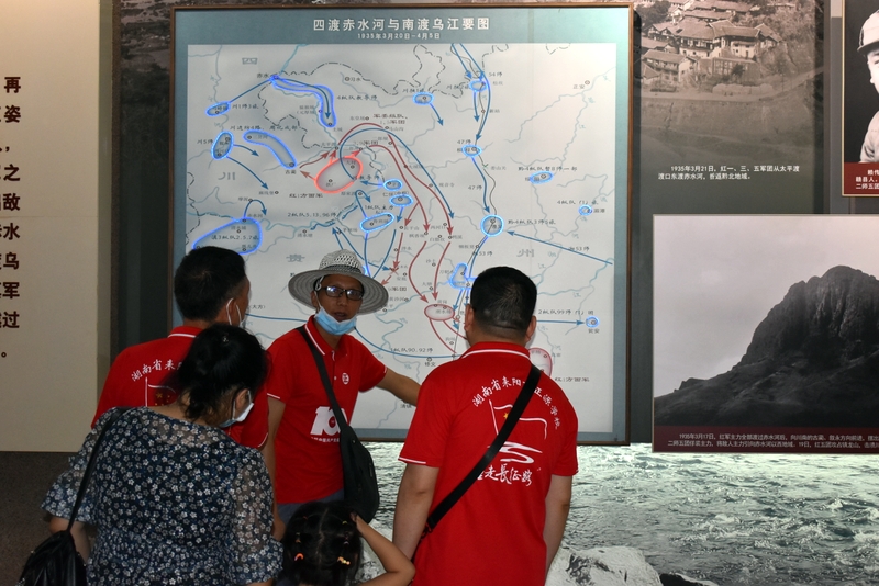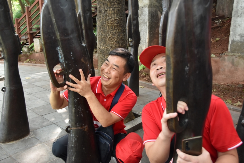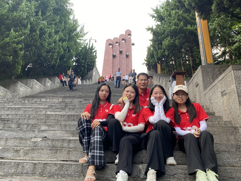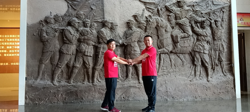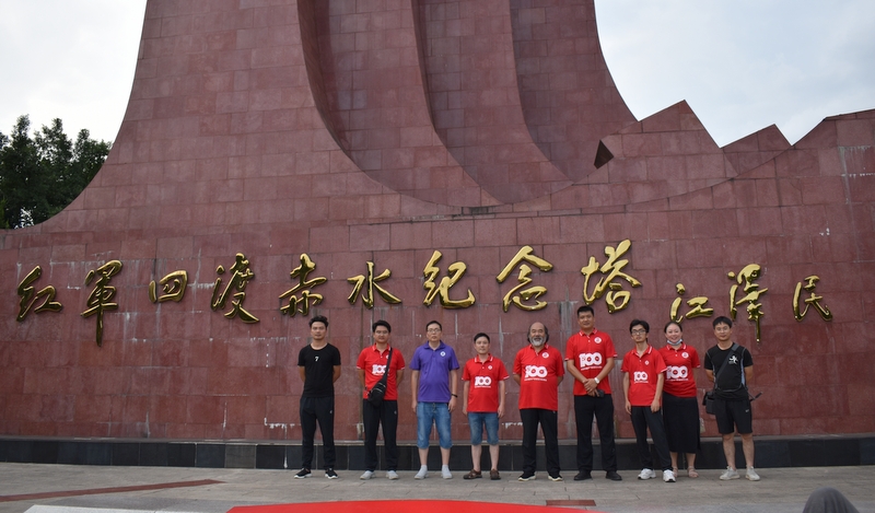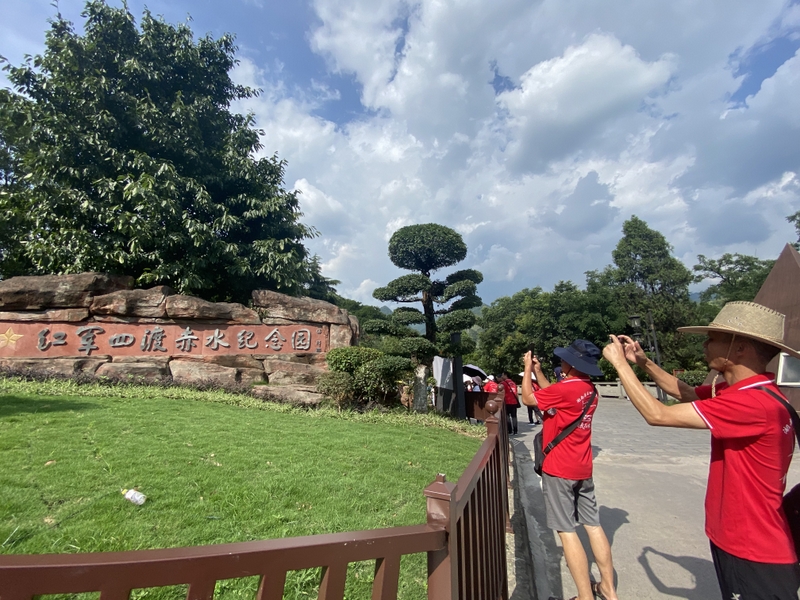看到正源学校重走长征路的标识,当地工作人员十分热情,主动前来帮忙指引路线,引导停车。车队抵达四渡赤水纪念园,老师们马不停蹄,接连参观红军长征过茅台陈列馆、打卡茅台渡口铁索桥、瞻仰红军四渡赤水纪念碑,精神抖擞,一气呵成。