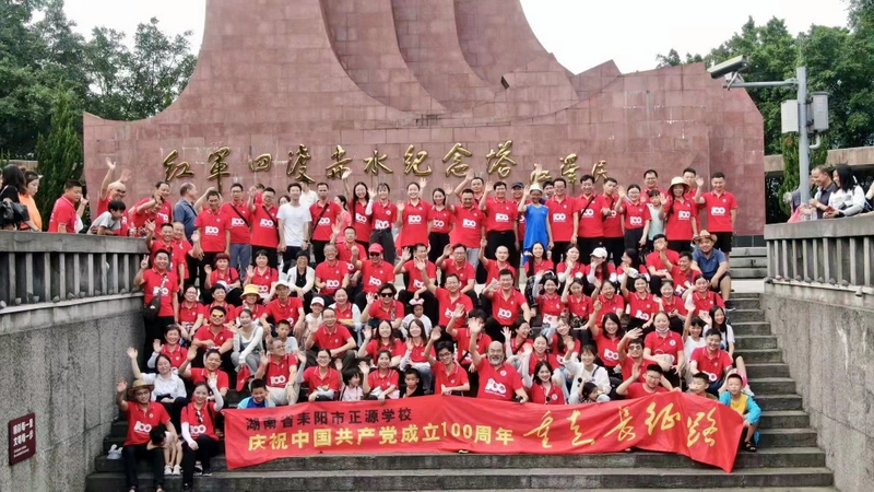 7月18日,正源学校庆祝中国共产党成立100周年重走长征路队伍到达遵义——长征路上至关重要、对红军命运起决定性作用的红色圣地。