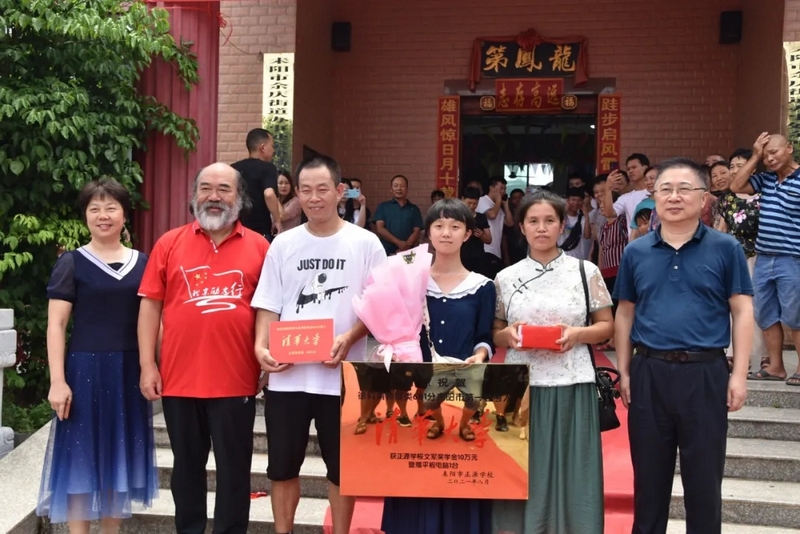 “徐轲娟生日快乐!”从深圳赶回耒阳的董事长梁晓斌亲手送上10万元奖学金,只有清华北大的大奖才会由董事长亲自颁发。每年高考庆功,最激动人心的时刻自然是梁董事长亲自给考上清华北大的同学颁奖。喜上加喜的是,今天是留守女孩徐轲娟的18岁生日。