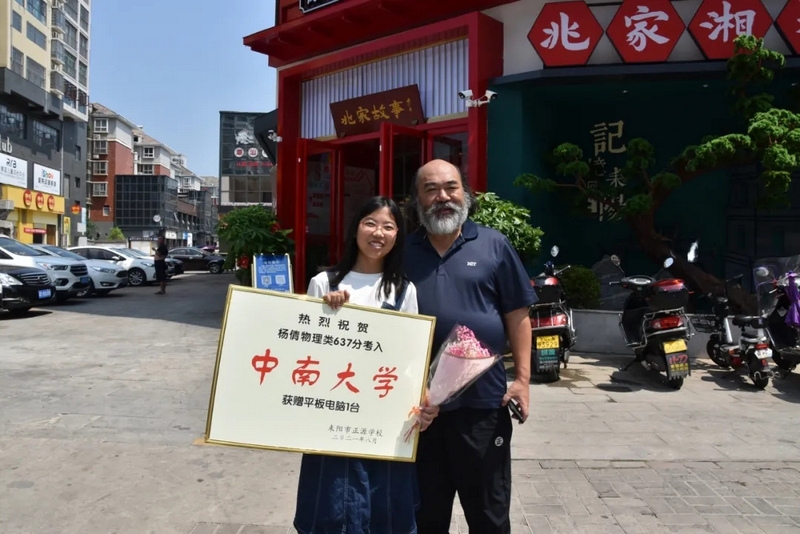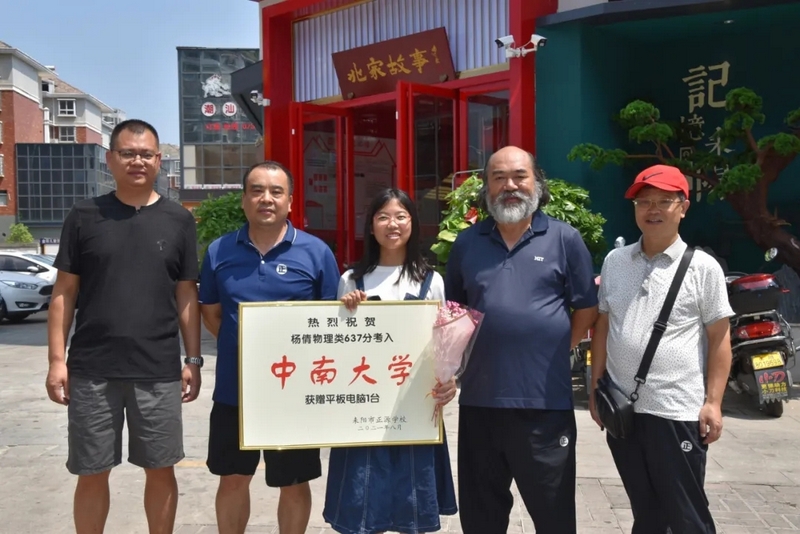 今年高考,杨倩637分考取中南大学湘雅医学院,前来祝贺的罗校长竖起大拇指夸赞:“连毛主席都说,北协和南湘雅,了不起!”一直对杨倩关爱有加的初中班主任尹柏林历来跟学生亲昵无间,给杨倩来了个脑筋急转弯:“这么厉害!杨倩啊,我以后再也不想见到你了!”机智的杨倩还是像初中一样的机灵,马上接了一句:“尹老师,你胆子这么小,那我放假再来看你啊。”一起前来贺喜的老师们这才反应过来,开怀大笑,既为这个小可爱的机敏感到高兴,更为这位农家孩子的美好前程感到欣慰。