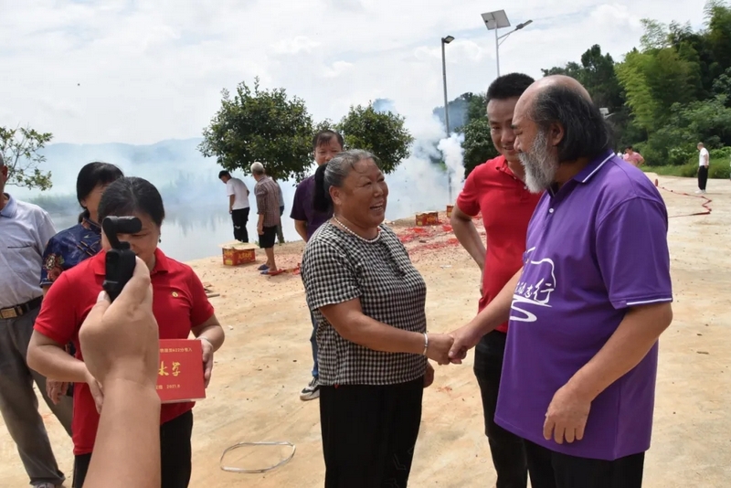 黄新慧奶奶曾德凤与罗校长亲切握手