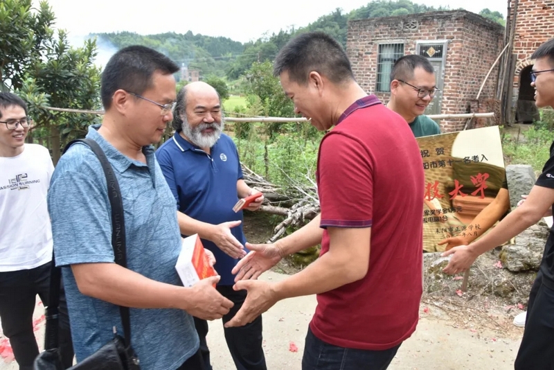带着老师们前来贺喜的罗校长,今天要去四个地方给学生贺喜。武汉大学的张国政、同济大学何慧琳、南昌航空大学谢伟奔,还有三个地方要在中午之前赶到。行程太緊,4个地方根本无法在一个上午走完,是走到半路临时打电话给夫人梁晓芬老师,分别带队,兵分两路,一路走城区,一路走乡镇。罗校长走的乡镇路线,等下还要从南阳赶往远在西乡的太平圩。