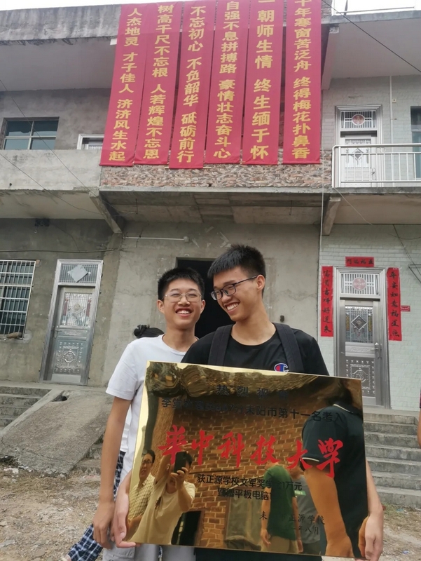 人群中,一个躲躲闪闪的身影终于憋不住探出头来叫了声“老师”,是李堂的堂弟,李鑫,在正源读准高一。初中老师问他为什么躲起来,李鑫扭捏了很久,说哥哥考了这么好的大学,自己跟哥哥有差距,知道老师关心自己,没脸见老师。老师说:“你哥初中三百多名,都能考到梁董事长的母校,你作为咱们以前357班的前五名,就这么没信心?”憋红了脸的李鑫终于鼓起勇气:“老师,我哥能从三百多名考到耒阳第11名,我还有三年,我也能!今年哥哥考了华中科大,我以后要考武汉大学!”