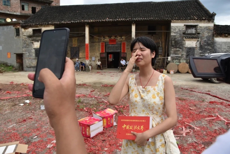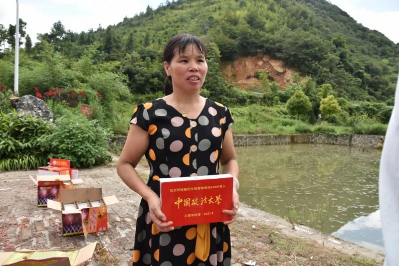 贺建珊今年高考物理类630分考入中国政法大学。村里的长辈在祖屋门口斑驳的青砖上贴上了大红的对联“ 尊师人才出金榜题名 重教国家兴学法报国”。