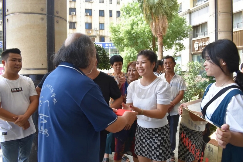 罗校长给朱媛媛妈妈黎氏河颁发文军奖学金10000元
