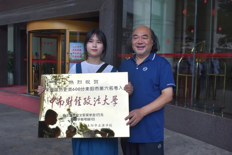 高考成绩出来的时候,朱媛媛正在黄金书屋看书,书屋里不能喧哗,她看到短信的第一反应就是把成绩截图发给爸爸和堂哥,这么多年来爸爸和堂哥为她付出了太多太多,这是他们期盼了十多年的结果。几天之后,学校的汇总统计数据出来了,朱媛媛历史类600分,在正源学校历史类排第六名,在耒阳市,还是第六名。