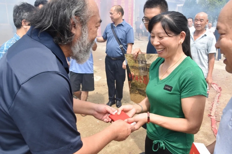 罗校长给姚小余母亲赠送文军奖学金10000元