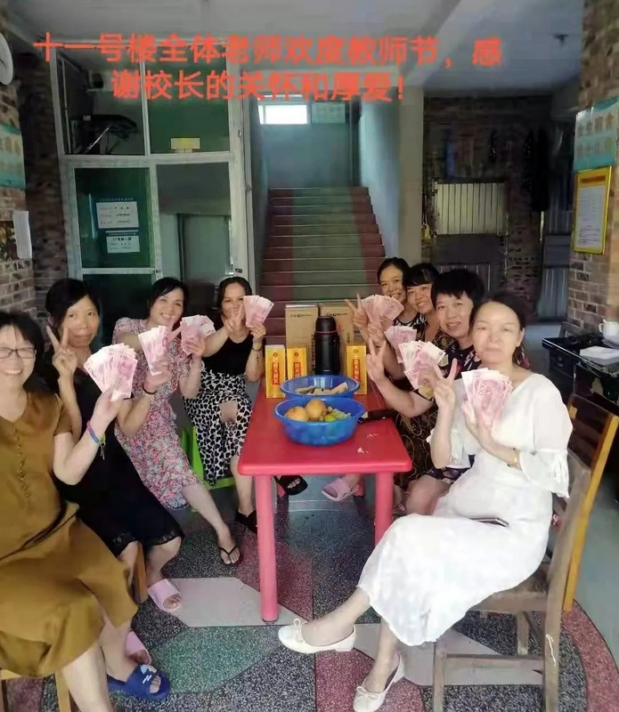 课后的老师们还是像往年一样,一边伏在案头备课、改作业,一边静候罗校长到办公室来推门送祝福。每年教师节,校长率领学校行政管理团队到一间间办公室给老师送果篮、送礼金、送礼品,是正源学校延续了17年的传统。