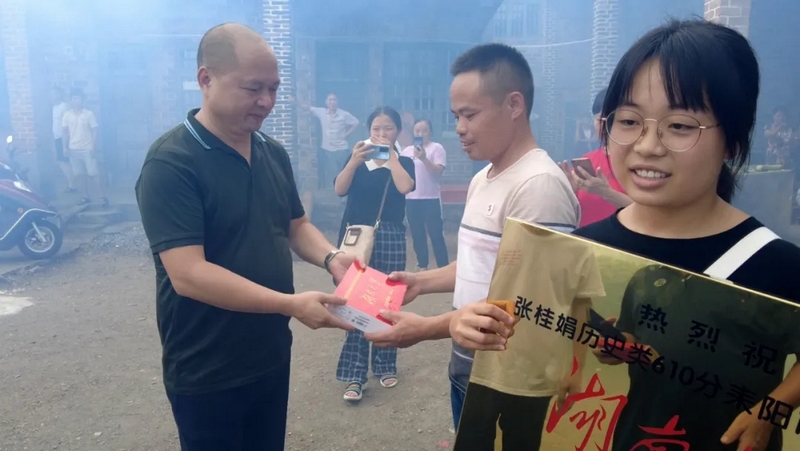 最疼孙女的奶奶彭义珍不识字。领到湖南大学录取通知书那天,张桂娟回到家第一件事就是把通知书拿给奶奶看。奶奶看不懂,问她这什么大学,是不是好学校,她说是的,奶奶说你考上大学我就安心了。送别时,患有严重的风湿,要扶着凳子、墙壁才能挪步的彭义珍坚持要颤颤巍巍地站起来跟记者挥手,她告诉记者:“大孙女去正源考到大学,现在两个小的又考到了正源,我好高兴!等两个小的考到大学了,我再请你们老师来我家喝酒。”