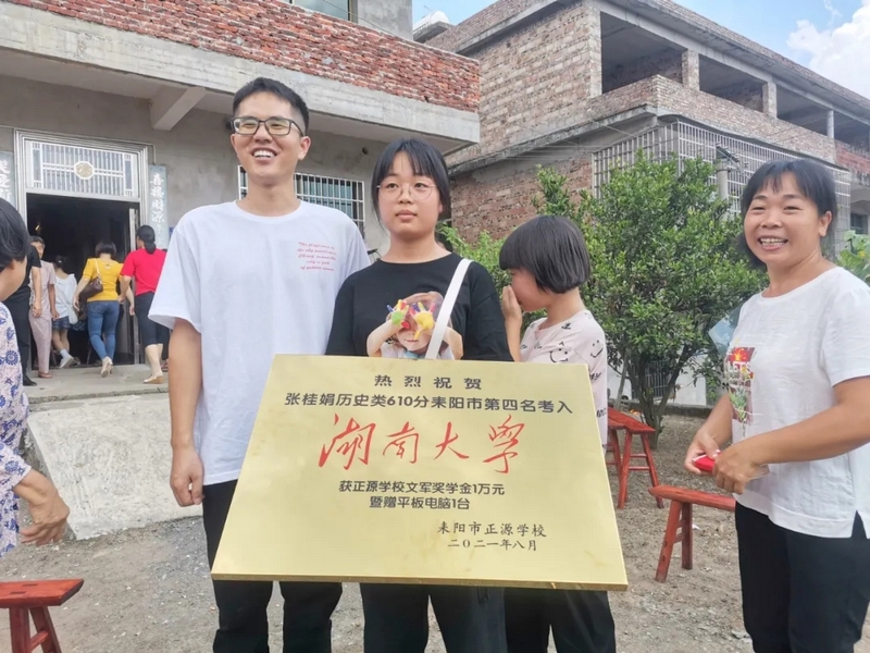口口声声说自己“本身成绩不是很好”的张桂娟,高一时认为自己能考个一本就好了,高三给自己定的目标是冲击北大,“我为什么不能想北大呢?求其上得其中,就算最终去不了北大,去到离北大最接近的地方也好。”这个高二开始“越来越努力”,高三开始“求其上得其中”的孩子,没有去成北大,但是对于自己历史类610分排正源学校第四名、耒阳市第四名的高考成绩,她很满意。考取湖南大学,她也很满意。但被录取的日语专业并不是她自己想要的,她说进了大学还要努力,要在大学里转专业、考研。