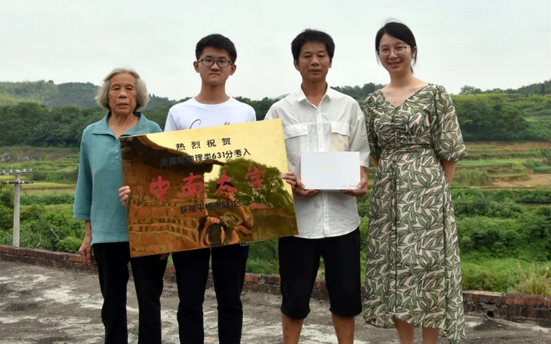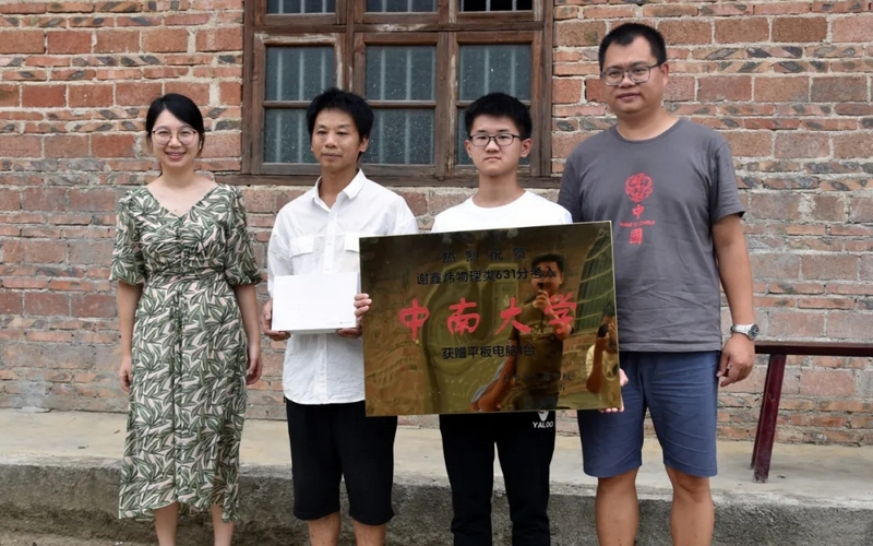 在广东打工的父亲谢朝爱,虽然一年只来学校一两次,家长会也从来没有时间来参加,但他对孩子的支持和爱却是深厚和睿智的。每次孩子放假,他都会打电话给孩子,听孩子分享一些成长的事情。他记得谢鑫炜初中的时候有给他讲班主任尹柏林老师的好,高中的时候也会说班主任曾晓辉老师对他很关心;记得在选文理科的时候,谢鑫炜也和父亲说明了自己的决定,谢朝爱告诉他只要好好读,无论选什么,爸爸都支持。