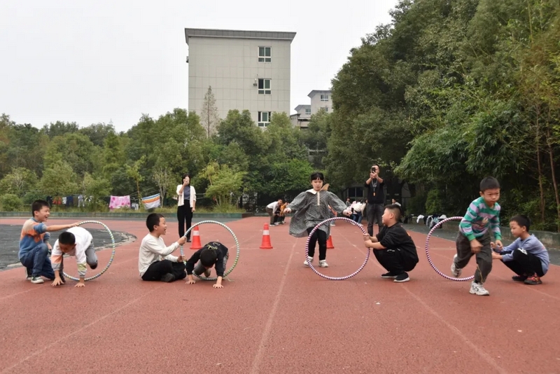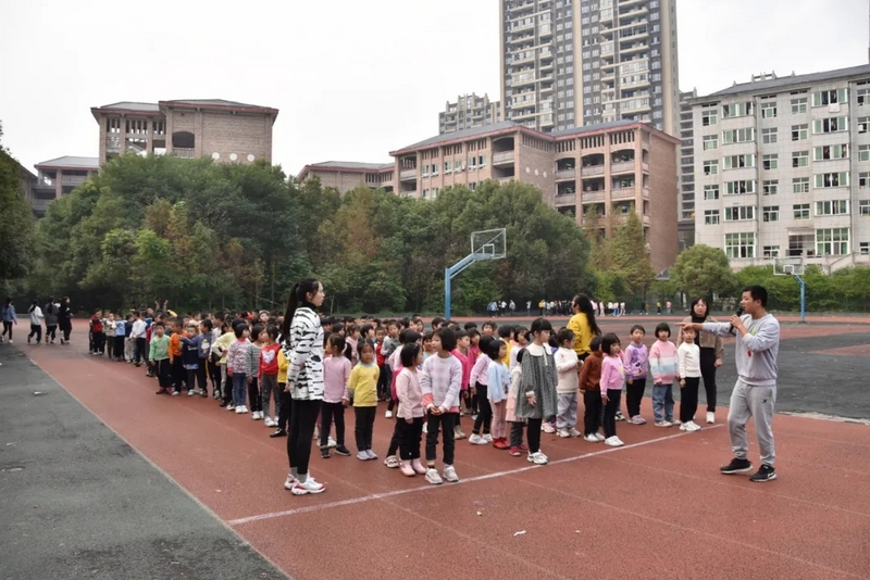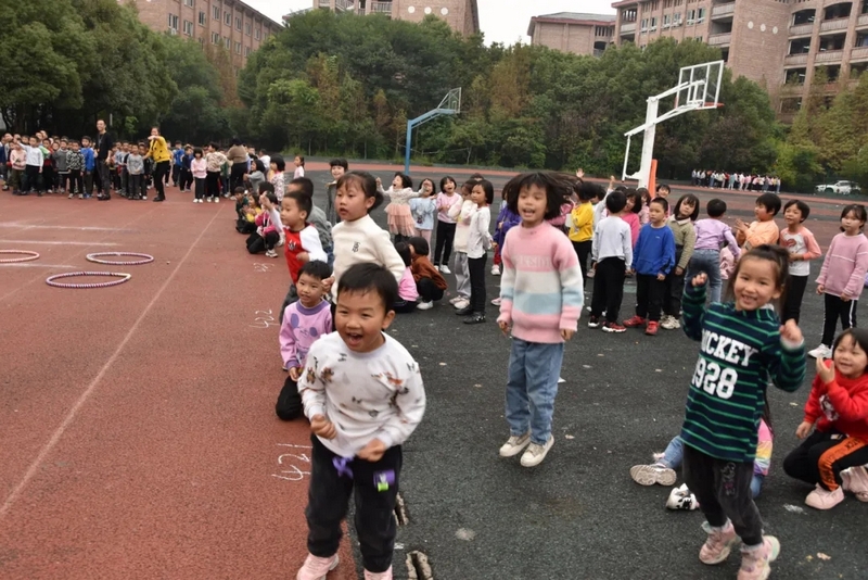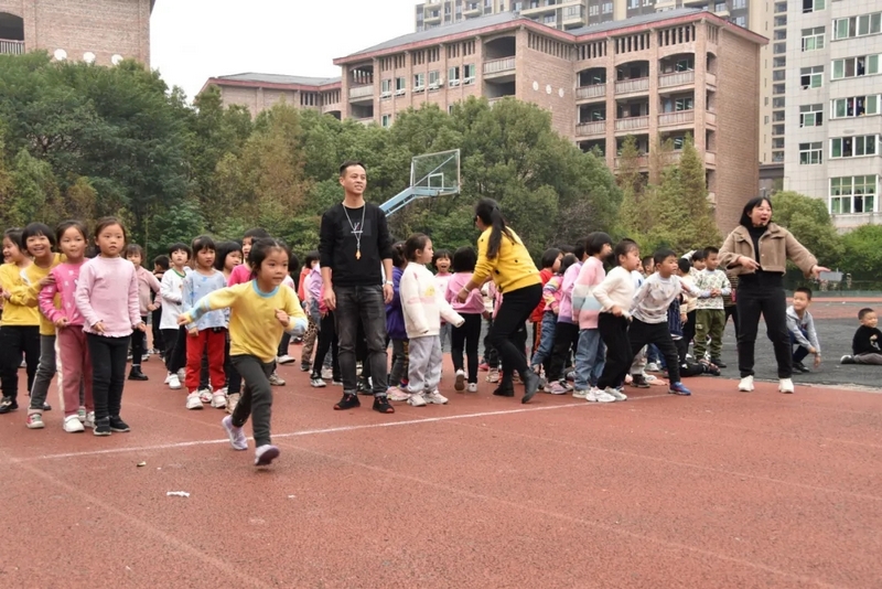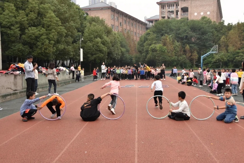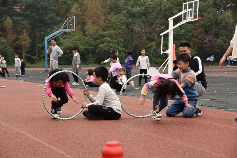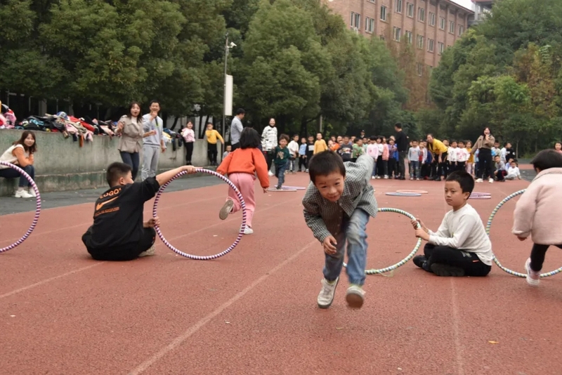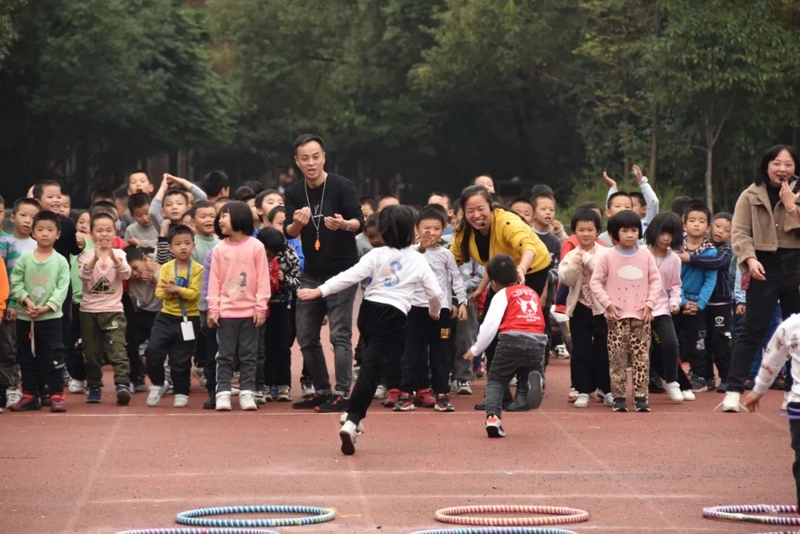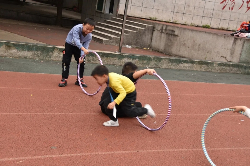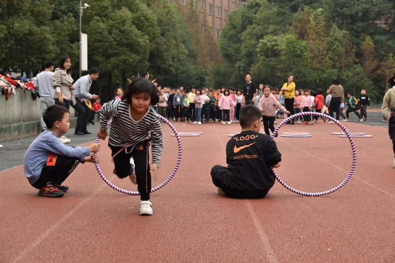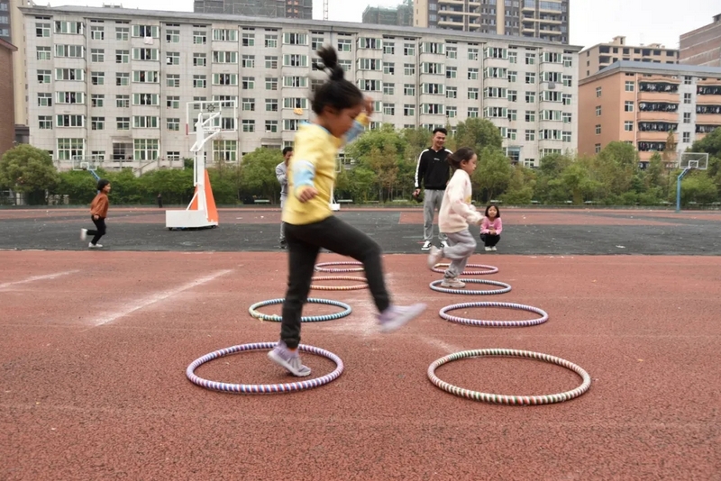 小朋友们都跃跃欲试。在班主任的组织下 ,一年级的176名同学,按照班级分成四队,女同学在前面,男同学在后面 。只听一声口哨响,第一位同学像箭一样冲出去 ,双脚跳过呼啦圈,以矫健的身姿钻过呼啦圈,绕过障碍物,再回到了起点,与下一同学击掌进行接力 。突然,421班的曾子怡同学哭泣起来,原来她特别害怕,不敢跑。在老师的引导和同学的鼓励下,曾子怡同学勇敢的跑了出去。
