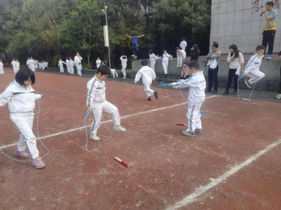 拿起接力棒,快速跑至跳绳区,看谁跳的最快!