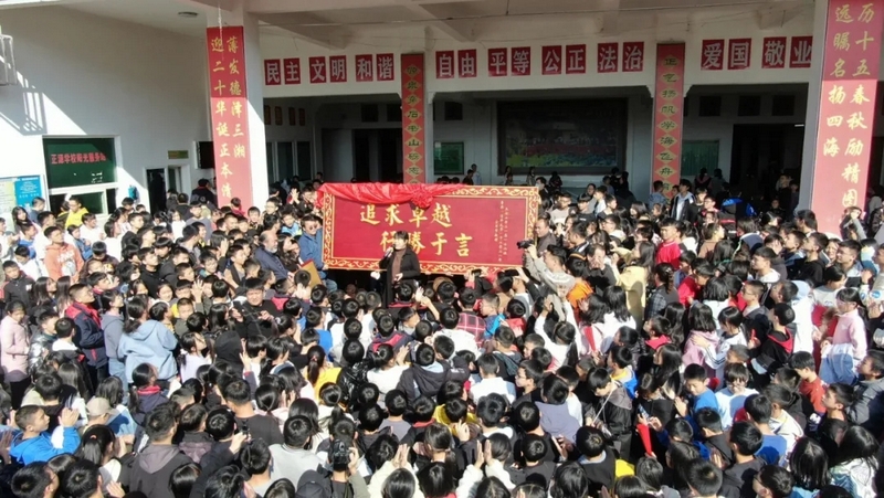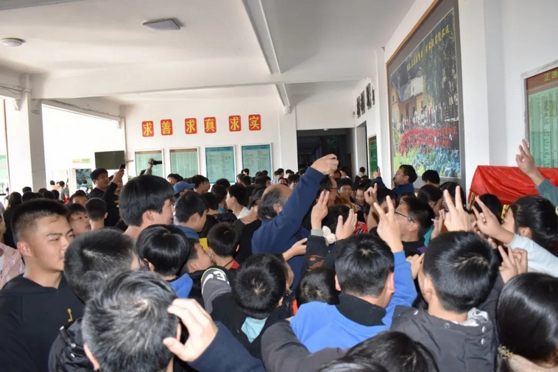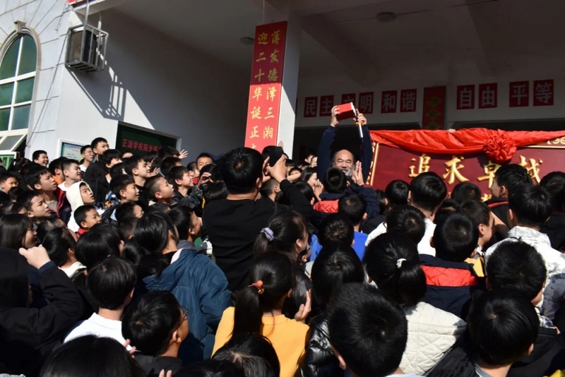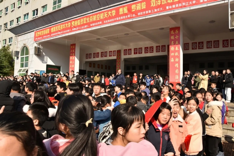 8月15日到新市镇木兰村为曹思恭贺祝福,罗校长送上2万元“文军奖学金”时说“考上清华双学籍,还有8万,我再来送一次。”追求卓越的留守孩子曹思,凭借2021全国女飞行学员高考湖南省第一名、全国第四名的优异成绩,以及暑假期间一个月高强度的飞行集训成绩,成为全国5个清华女飞行员之一,果真实现了校长的祝福。此时此刻,在双十一这个特殊的日子里,罗校长在现场万余名同学羡慕与期待的目光中,将8万元奖学金送到曹思母亲手中,致敬空军节,致敬耒阳首位女空军飞行员,致敬为空军部队养育了两名优秀儿女的曹思父母。