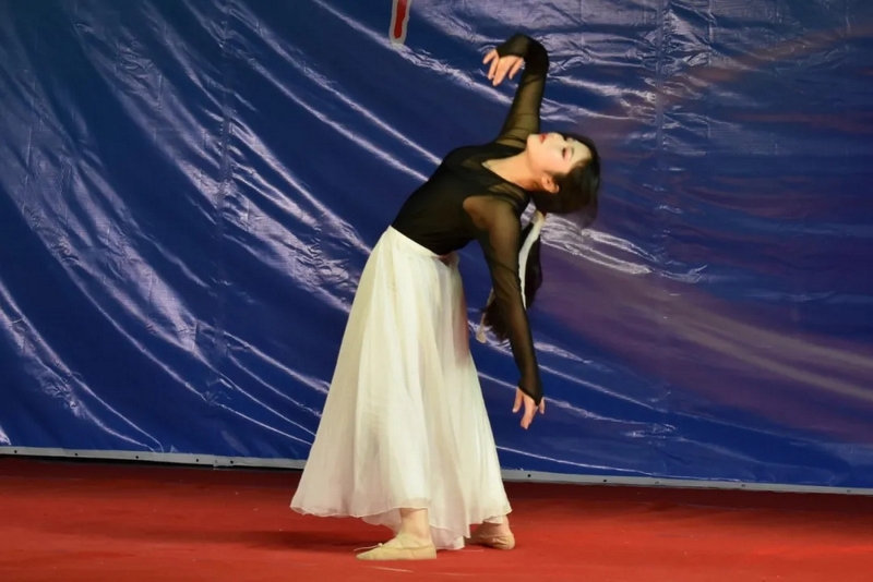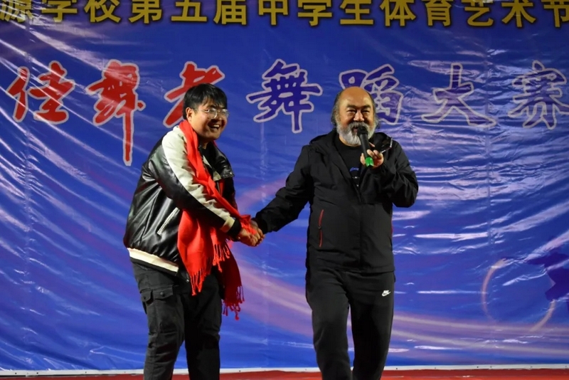 被校长临时抓了壮丁的张鸣罡老师,不愧是音乐类八大名校沈阳音乐学院毕业的高材生。把外套一甩,就地取材,就着音响中随机播放的乐曲即兴起舞,功底深厚,精妙绝伦,再次点沸全场,掌声雷动。