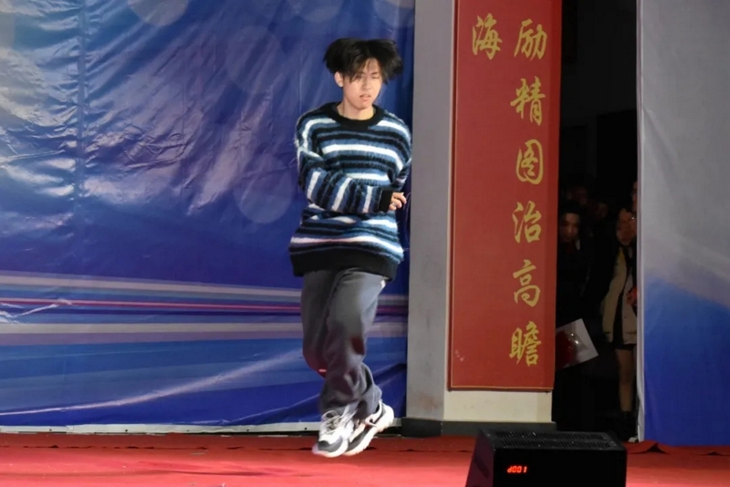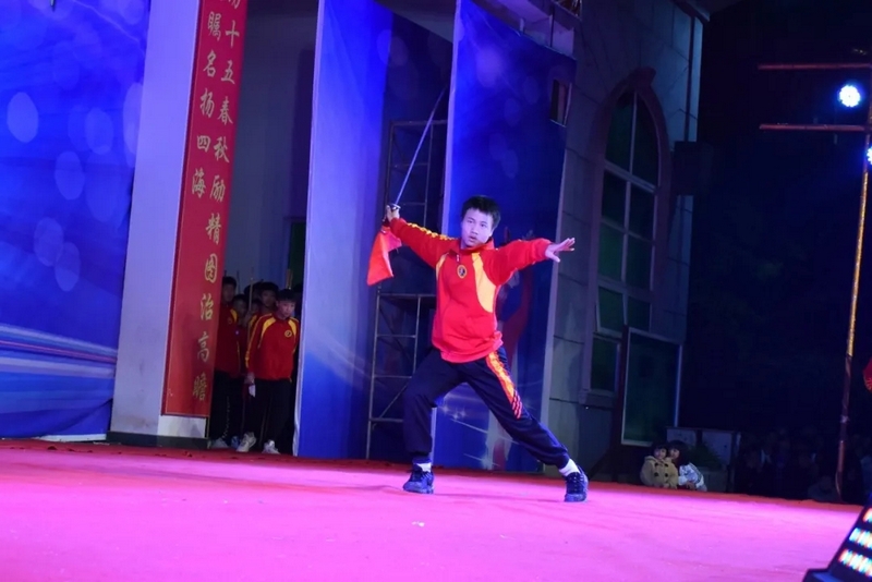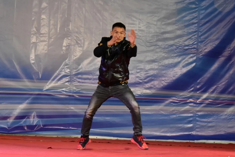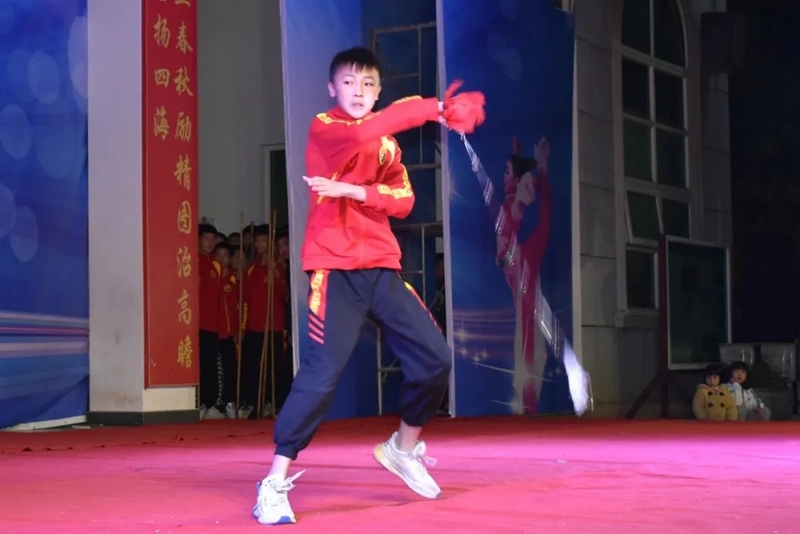 晚上7点整,在全场同学山呼海啸般的倒计时中,《武林风》霸气登场。单刀、九节鞭、双截棍、少林棍等十八般兵器腾空飞舞,虎虎生风。甫一开场即动人心魄,威震八方。