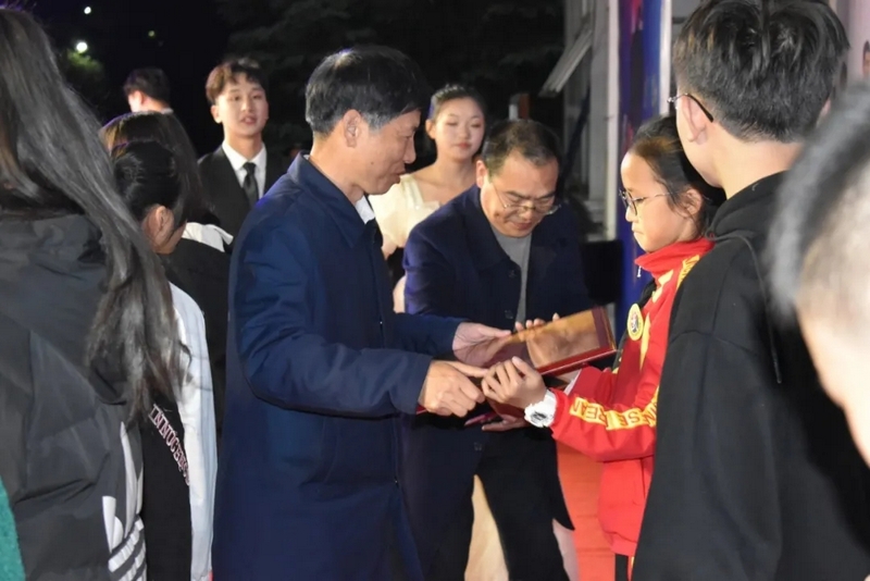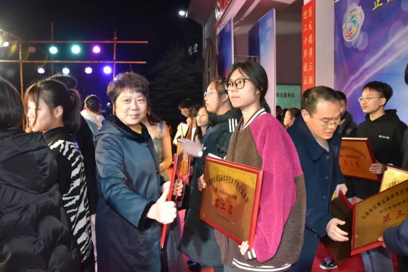 校领导给校园“十佳歌手”大赛及“十佳舞者”舞蹈大赛优胜者颁奖