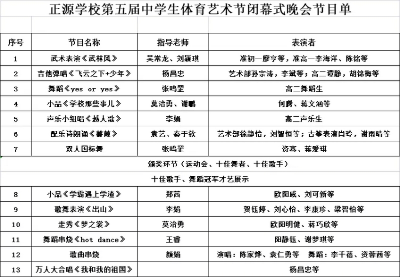 正源学校第五届中学生体育艺术节闭幕式完美落幕