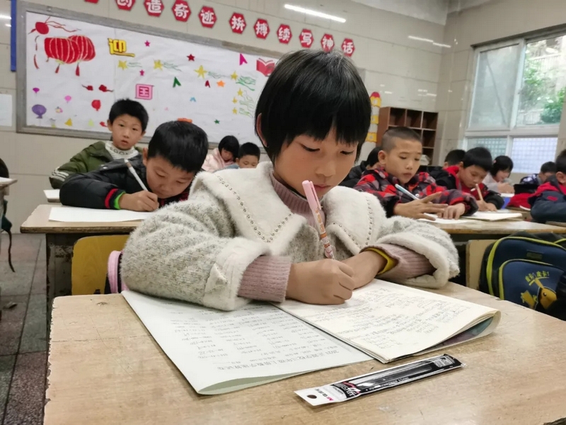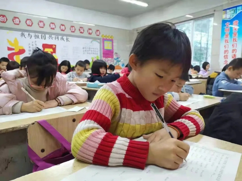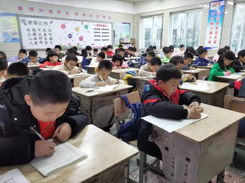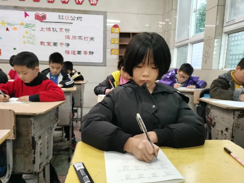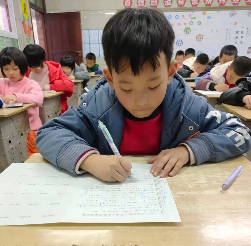 比赛中,同学们个个信心十足,沉着、冷静、快速地答题,认真细致地算、工整地书写,呈现出“你追我赶,你不让我,我不让你”的景象。