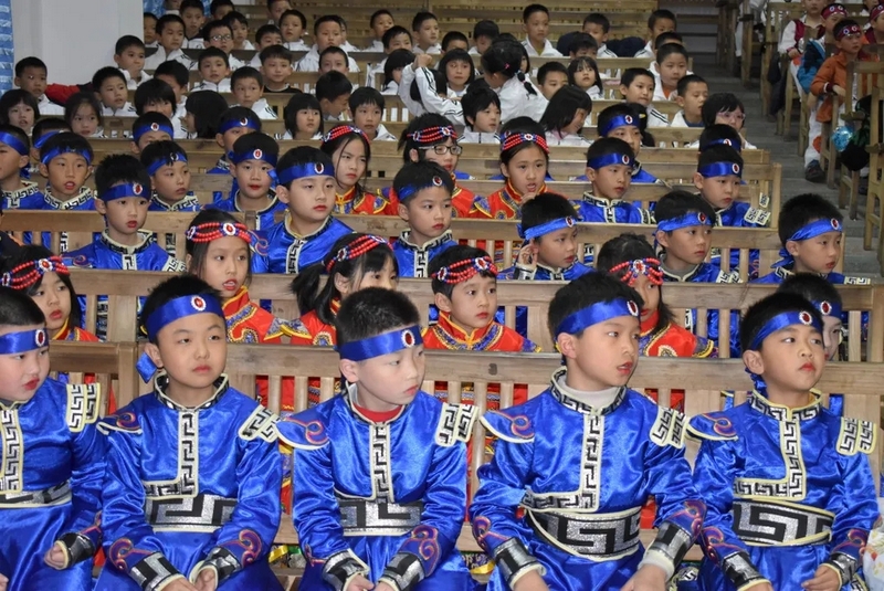 比赛活动中,学校领导亲临现场。孩子们以苗家山寨的古老习俗歌谣《拦门酒》和优美的舞蹈《小当家》欢迎到场的贵宾。