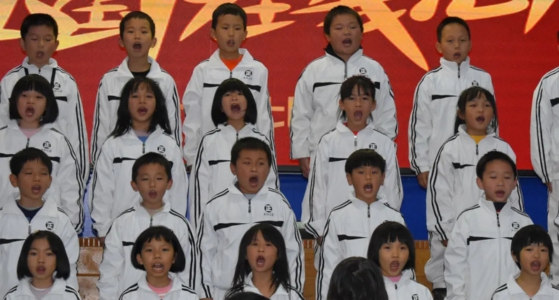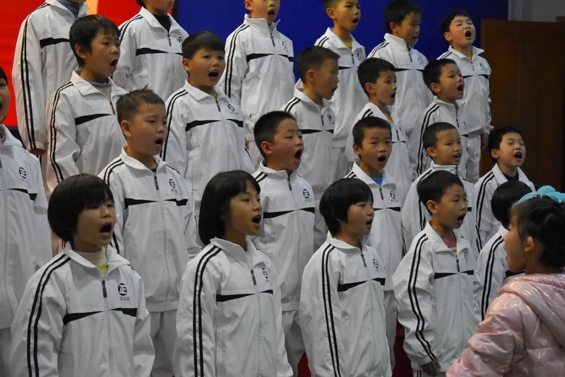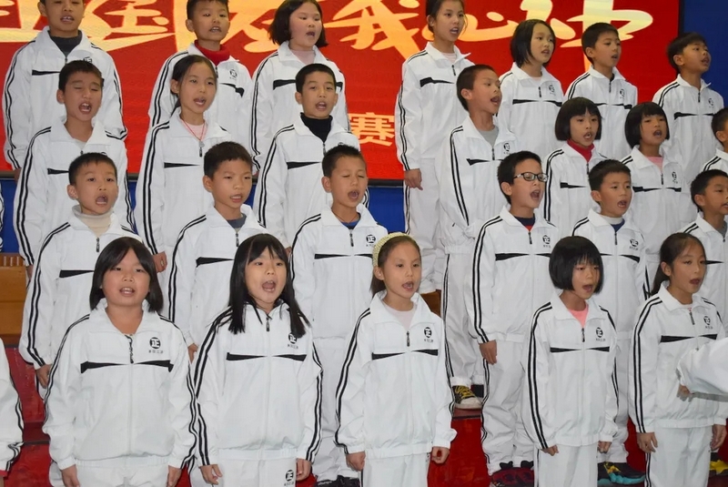每班两首歌,一首为必唱歌曲《猜谜谣》,另一首为班级自选歌曲。赛前,各班在音乐老师的带领下,积极排练。