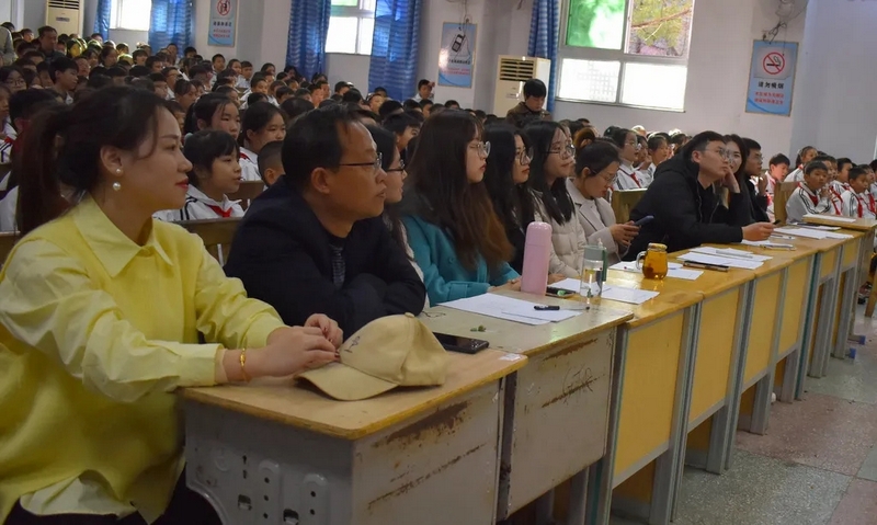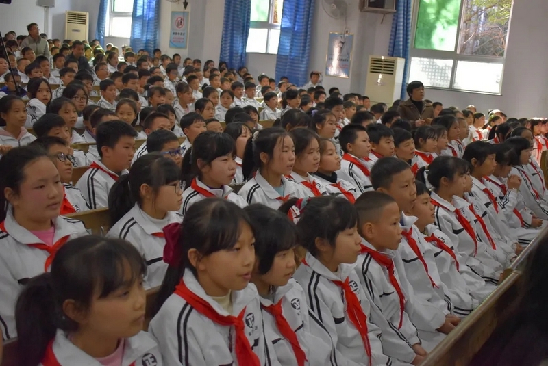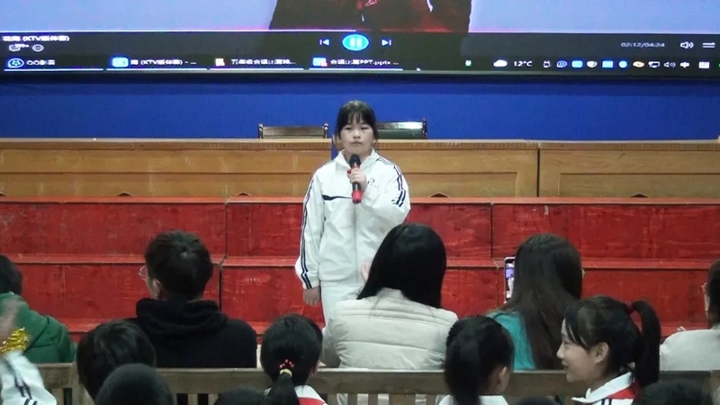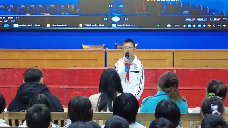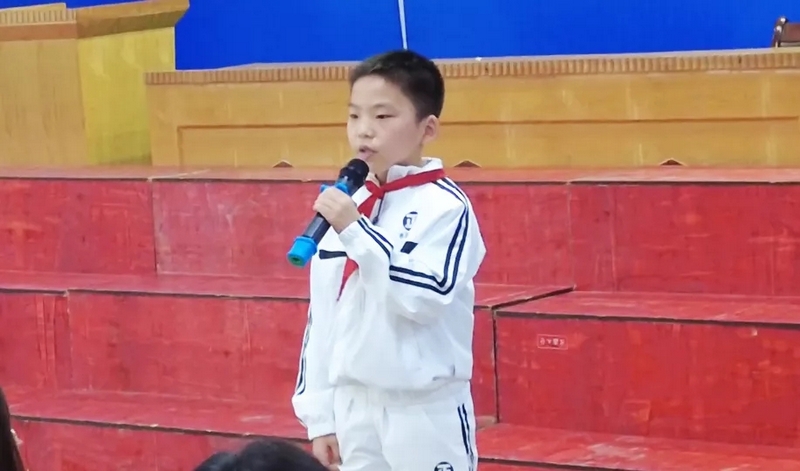 主持人邀请五年级蒋主任上台讲话。蒋主任跟通学部学生重申四点,希望同学们珍惜时间、按时回家、文明礼貌、午休守纪。