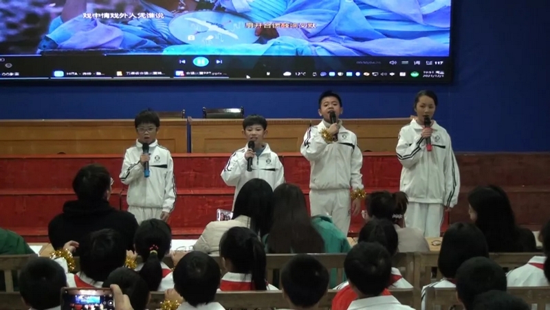 期间,主持老师还安排小主持人谷天乐串场独唱,并现场征召四位小歌手合唱《赤伶》,大家玩得不亦乐乎!