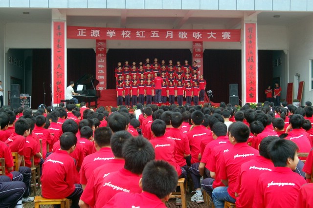 六月十二日,初中部在学校广场举行“红五月”歌咏比赛,初一至初三28个班全部参加合唱比赛,主唱歌曲都是些红色经典。通过评委老师现场评分,初23班、27班、31班、32班分别获得一等奖;另有7个班获二等奖、11个班获三等奖。