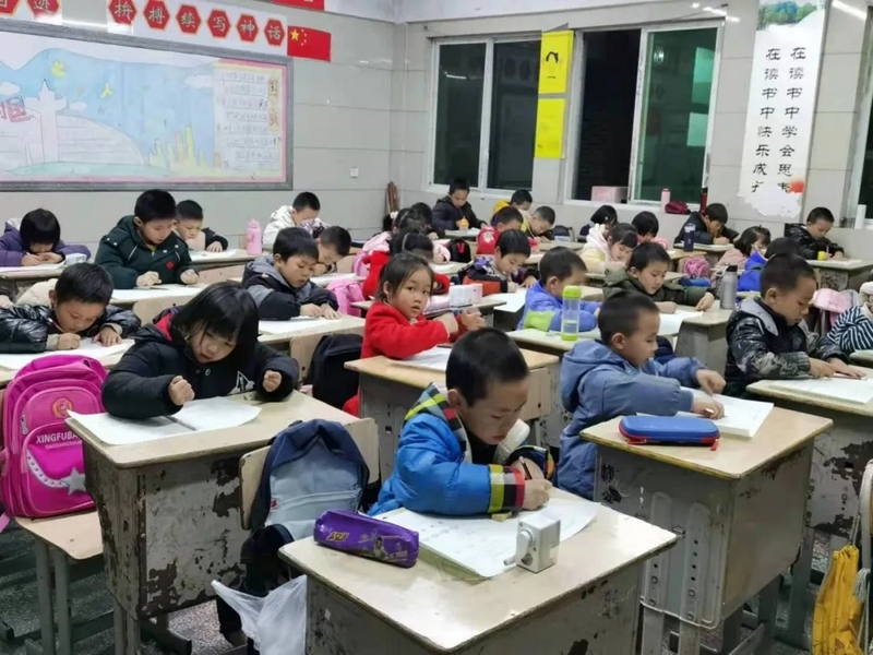 12月8日晚上7:45分准时开赛,哨声一响,老师计时,学生仔细作答,比赛有序进行。竞赛中孩子们信心满满,神情专注,认真细致地演算,工整地书写,个个争当速算小明星。