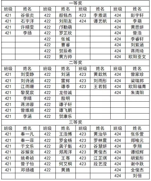 本次活动,能更好地了解学生的数学基础知识和计算能力,培养学生“正确、迅速、合理、灵活”的速算习惯、同时提高学生的计算能力、竞争意识和集体主义精神。具体获奖名单如下: