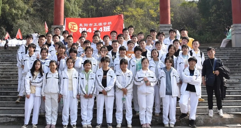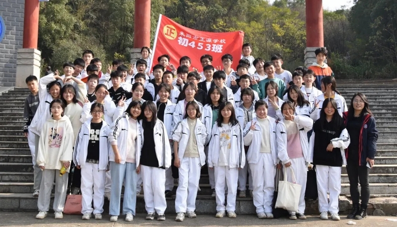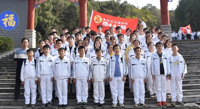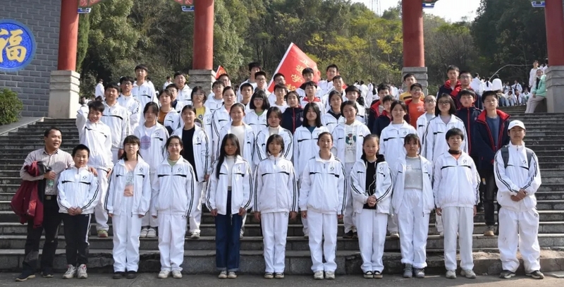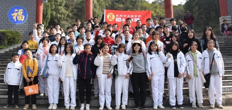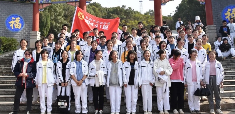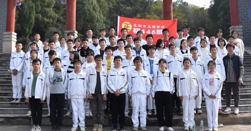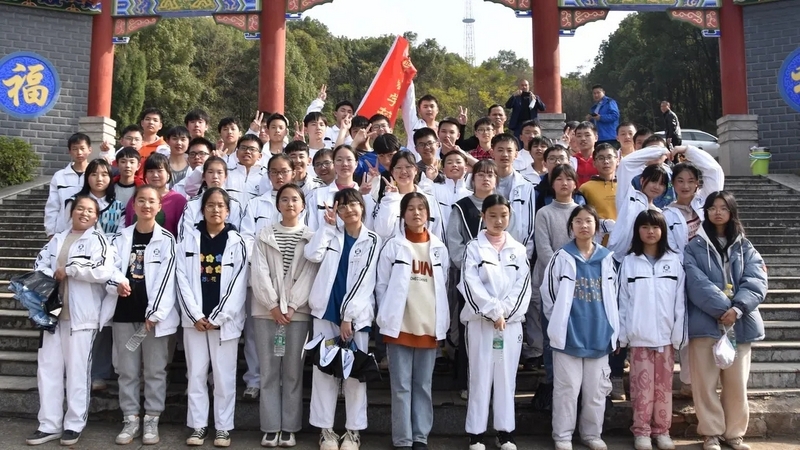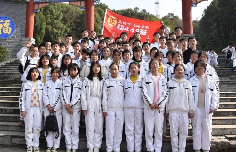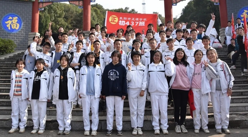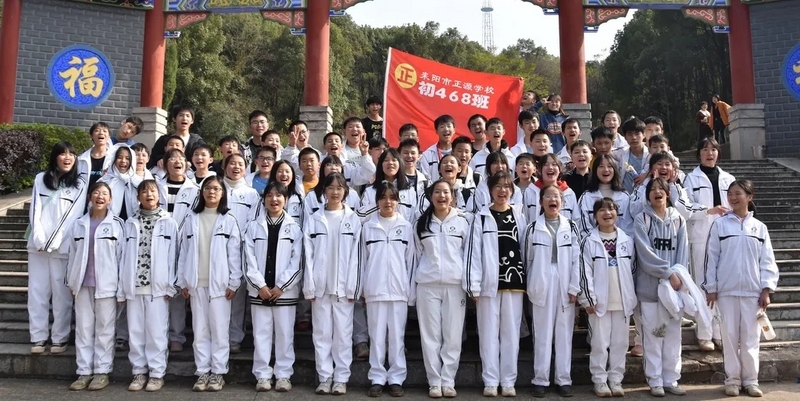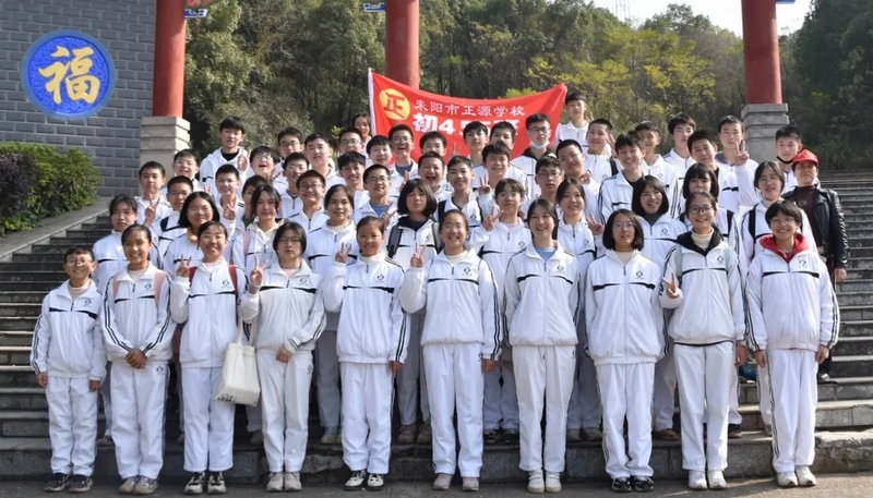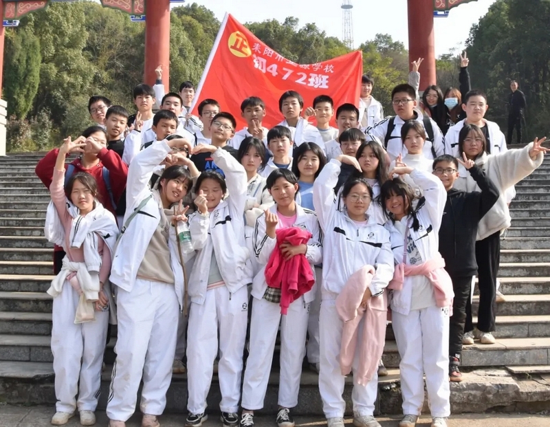 随后罗校长带领全体师生歌唱《海阔天空》、《我和我的祖国》。歌声里有登上山顶的凌云壮志,有青春张扬的蓬勃,更有正源学子生生不息的活力。合唱完毕,全体师生与校长在大雄宝殿合照留影,记录下美好的回忆。队伍继续向前,直登山顶。会当凌绝顶,一览众山小,从鹿岐峰俯视耒阳,学生们的眼界开阔,心灵也更开阔。