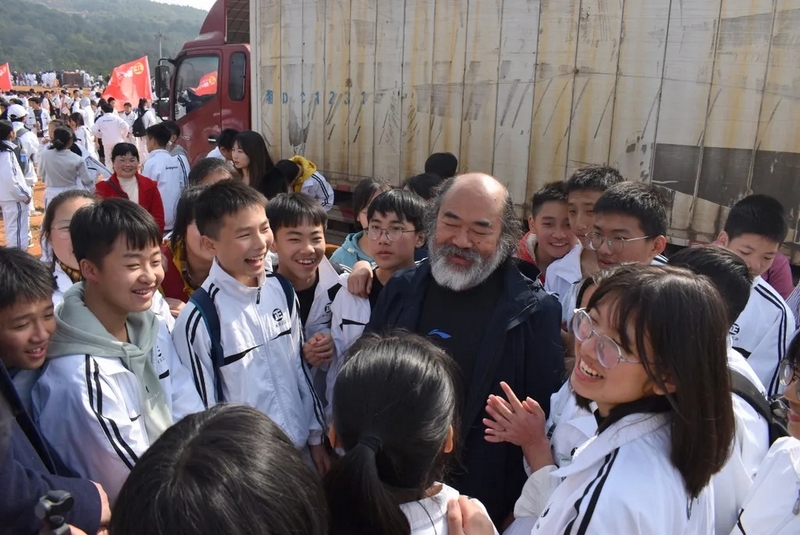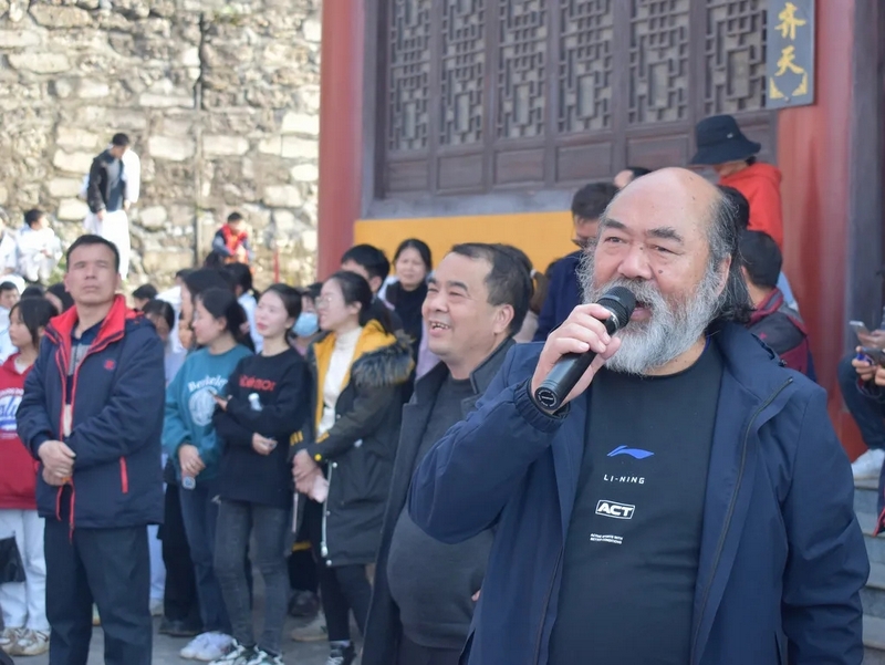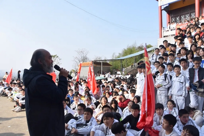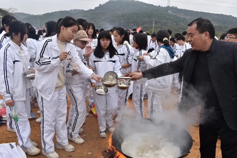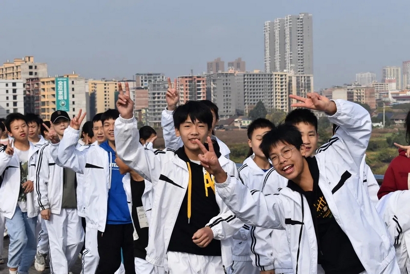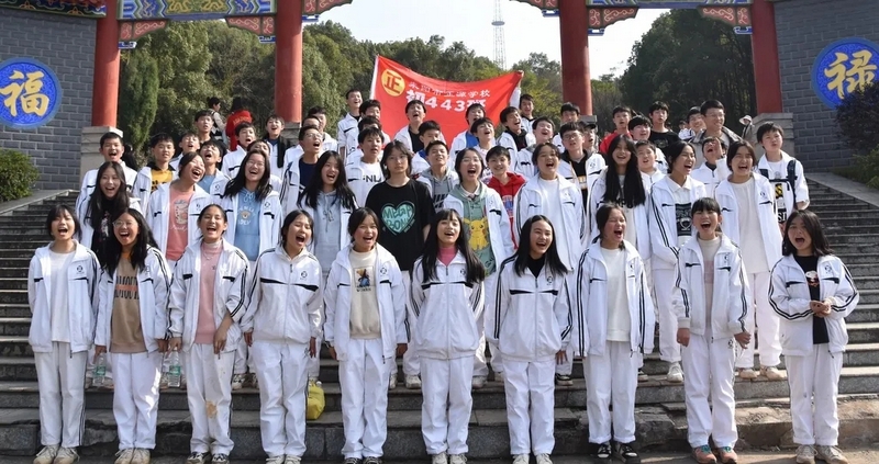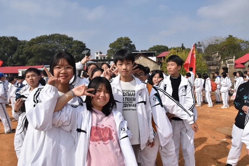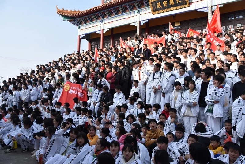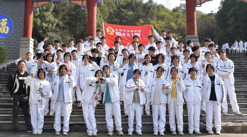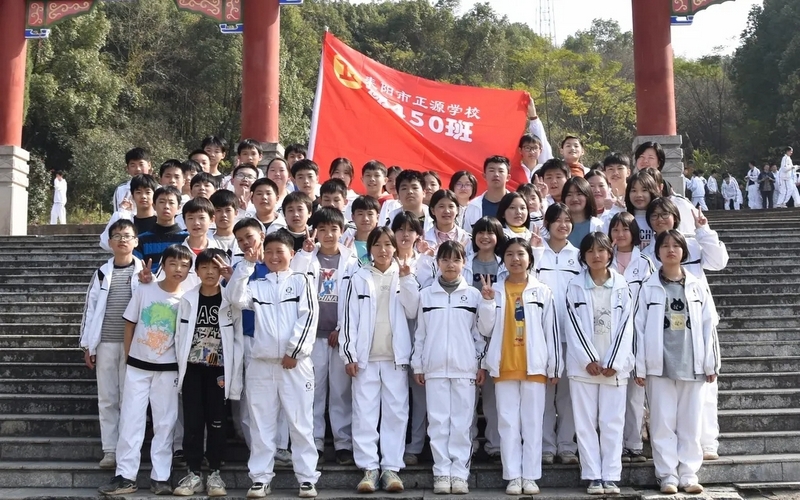 随后罗校长带领全体师生歌唱《海阔天空》、《我和我的祖国》。歌声里有登上山顶的凌云壮志,有青春张扬的蓬勃,更有正源学子生生不息的活力。合唱完毕,全体师生与校长在大雄宝殿合照留影,记录下美好的回忆。队伍继续向前,直登山顶。会当凌绝顶,一览众山小,从鹿岐峰俯视耒阳,学生们的眼界开阔,心灵也更开阔。