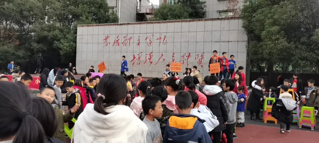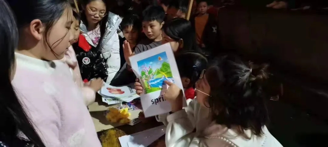 活动终于开始啦!主持人给同学们介绍相关规则:学生们通过入口处设置的口语交谈、英语歌曲等才艺展示,方可进入活动区参加活动,赢取小奖品。