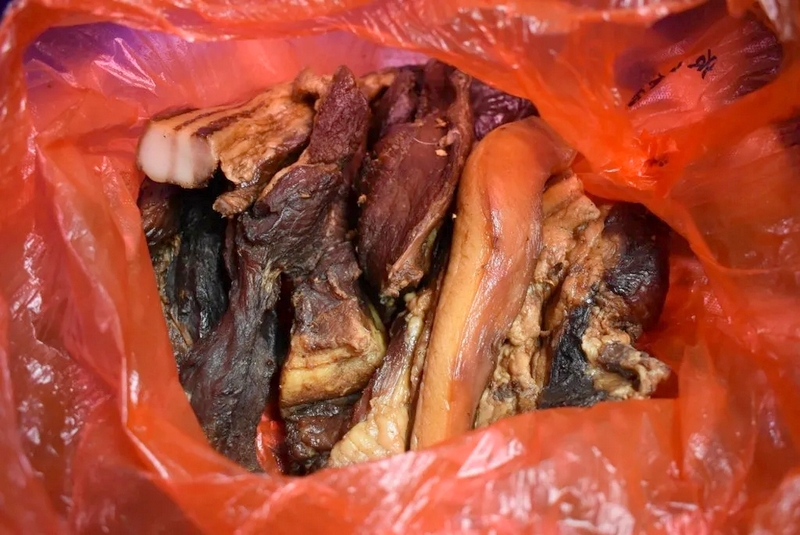 今年的腊肉跟往年有些不一样,大有来头。肉当然还是农家收购的土猪肉,却是借鉴贵州铜仁山村里“黑腊肉”的方法熏制而成。这是今年暑假全校教师“重走长征路”期间,路过贵州铜仁时跟当地山民“偷师”的工艺。因为时间关系,不能像山民们一样长年累月灶火烟熏,自制的腊肉看起来不够黑,但隔着袋子柴火气息就扑鼻而来,浓郁而又芬芳。