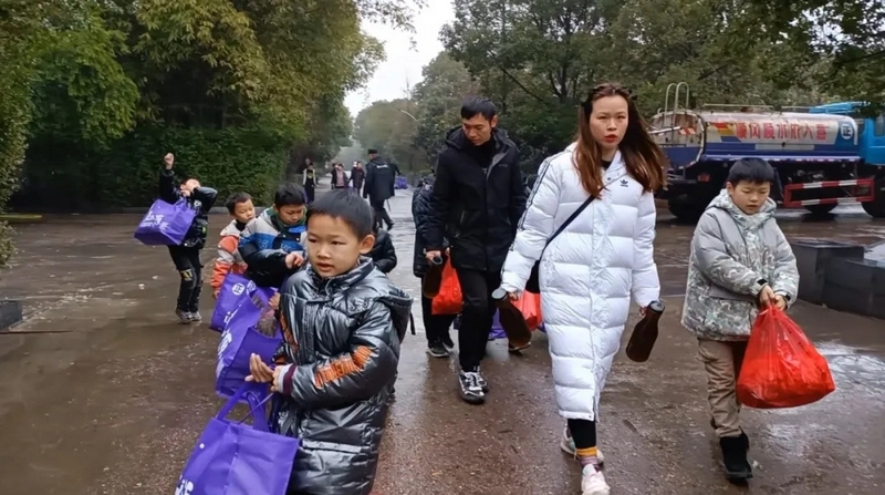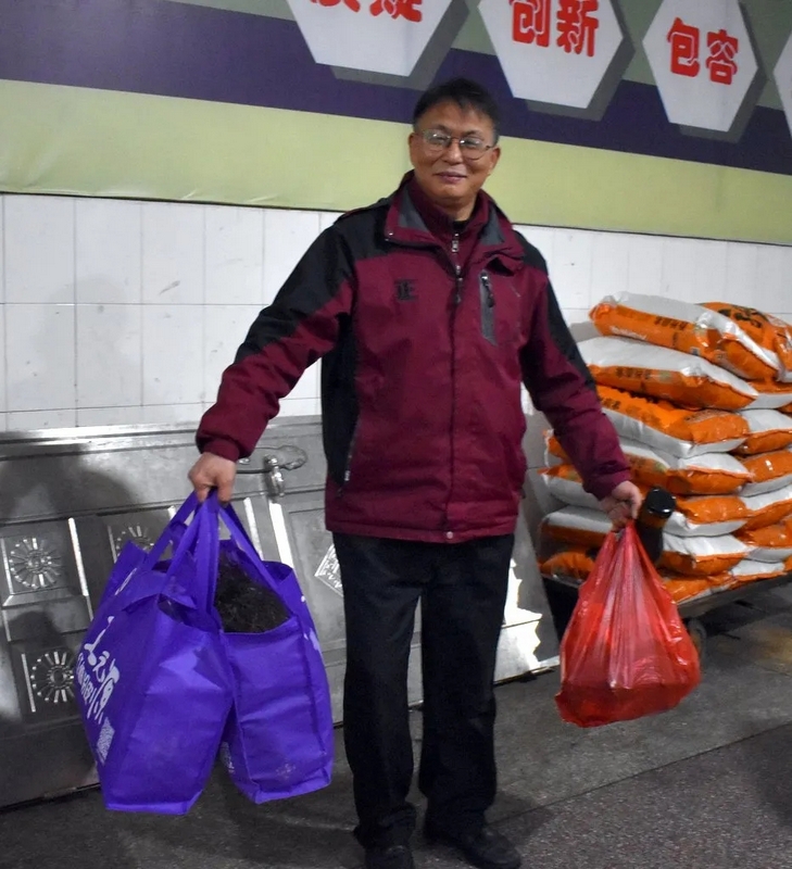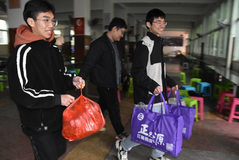 送完学生离校上车,老师们开始领取年货,左一袋、右一袋,拎的拎、扛的扛,气喘吁吁,喜笑颜开。初一年级黄晓利老师老家是永州的,已经在正源任教近十个年头,对于正源年货的来龙去脉早已了然于胸。面对眼前满满当当的年货福利,买好车票的黄老师眉头紧锁,一脸幸福的烦恼:“耒阳的特产香是香,正源学校的福利确实满满当当,就是拎起来手痛啊,太多了!等下下了高铁,非要找家人来接才行。”