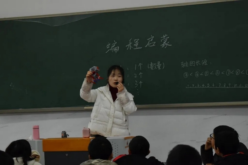 学生操作器材之前,老师给学生们进行讲解。“机器人”本身是由机械和程序两部分内容构成的。运行的就是机械,例如孩子们这次拼的双足机器人,就需要他们接触到机械知识。电学启蒙课程用的是电子积木模块,例如:导线、电键、集成电路、开关等等,可以搭建出多种基础电学电路、门铃电路、光纤电路、录音电路、功放电路等等。这些课程都需要用到数学知识、物理知识、机械和工程知识。
