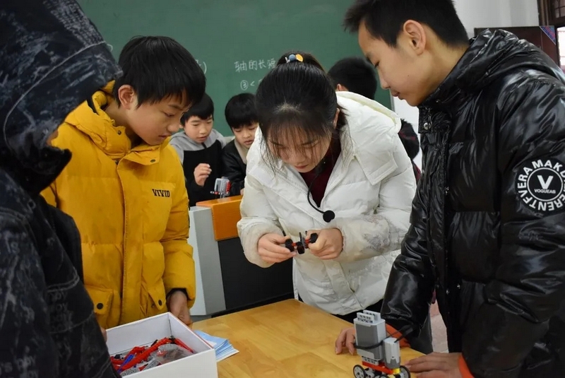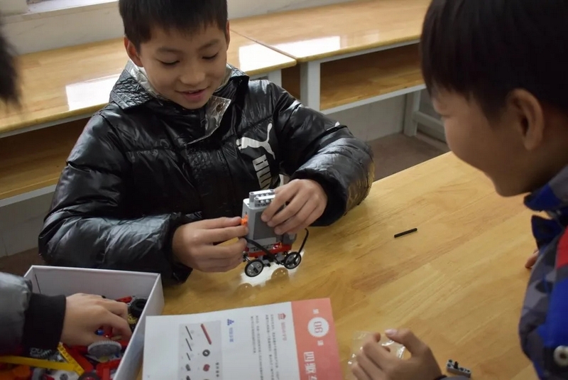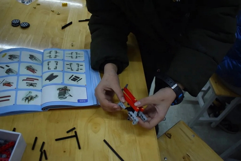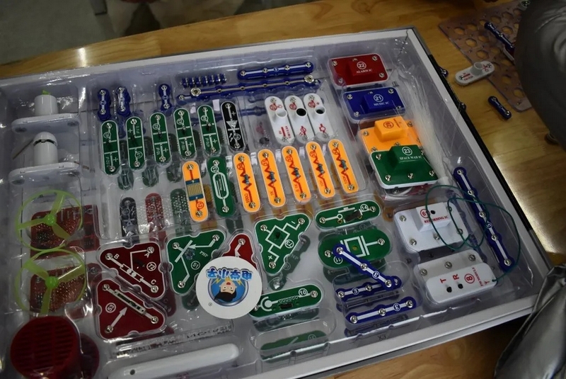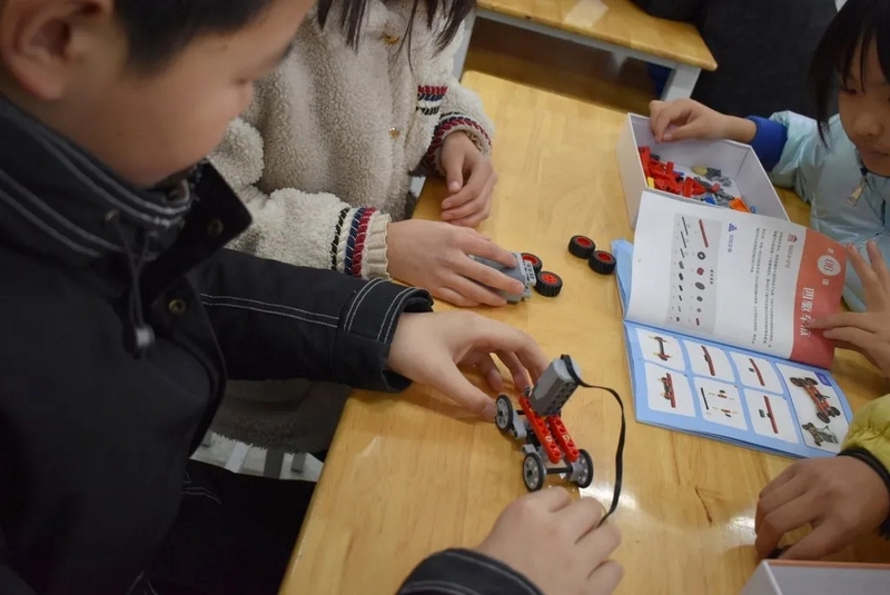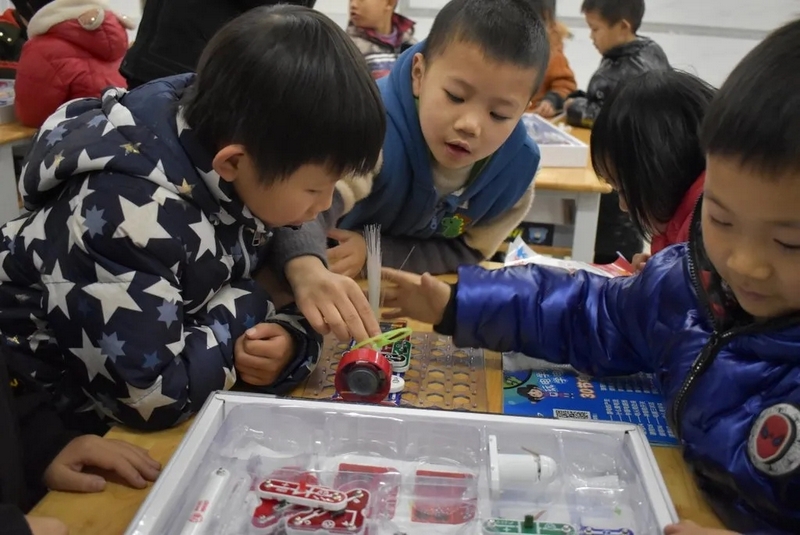 在机器人启蒙课上,他们亲自用积木拼搭出一个电风扇或者机械爪,又或者是四驱车,从中理解到杠杆是什么,连杆运动是什么……在电学启蒙课上,他们通过拼接各式电路,孩子们可以将知识迁移到他们在生活中实际接触到的各类电路上面,加深对周围事物的观察和理解。