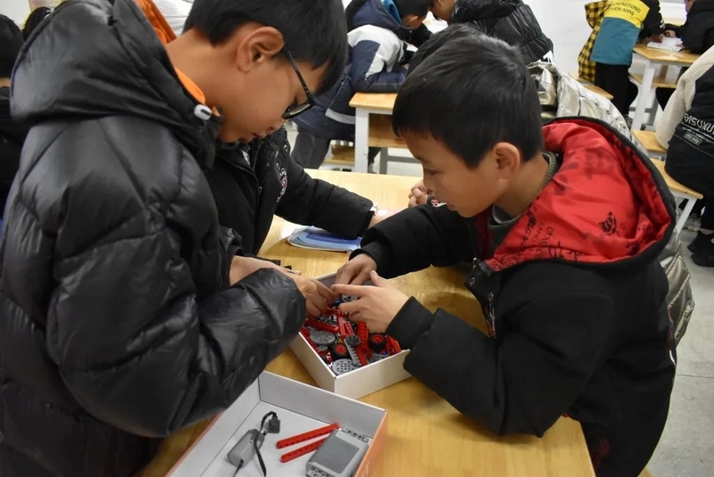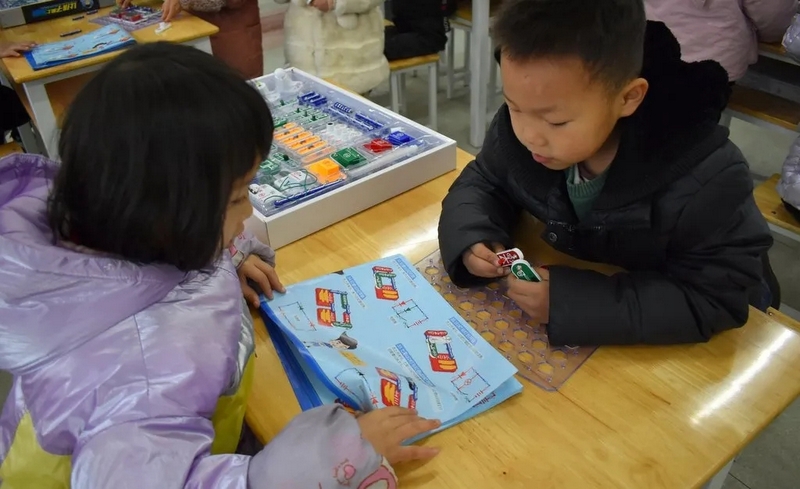 于是借着寒假托管服务的机会,我们增开了两门新的课程:机器人启蒙和电学启蒙。STEM教育不仅仅是学习知识,更重要的方式是让学生参与项目,学习、运用知识,通过团队合作来解决实际问题,连接抽象知识与实际生活的知识。我们的机器人启蒙和电学启蒙,就是通过教具的使用和模型的搭建,提供给孩子们一种动手做的课堂体验。