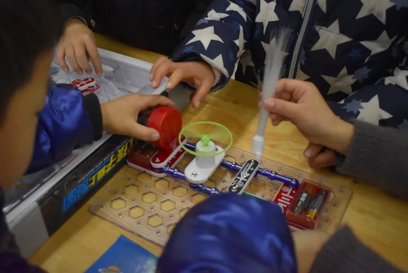 自己拼出的机器人、机械爪、电风扇等,接上电源后就可以运转;拼接好的各种电路,接上电源后,就会产生不一样的效果。孩子们独立完成的每一项成果,都让他们欢呼雀跃。快乐很简单,也充满了意义!