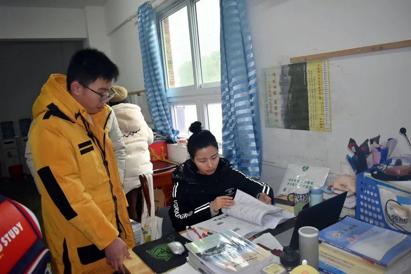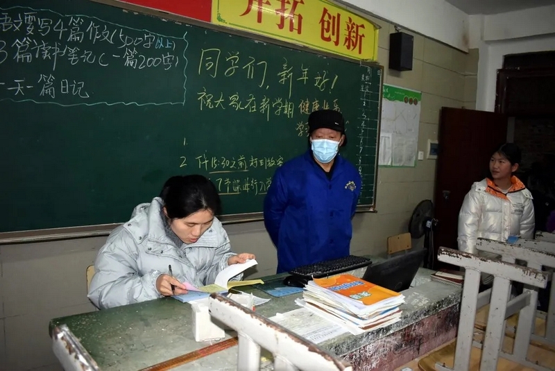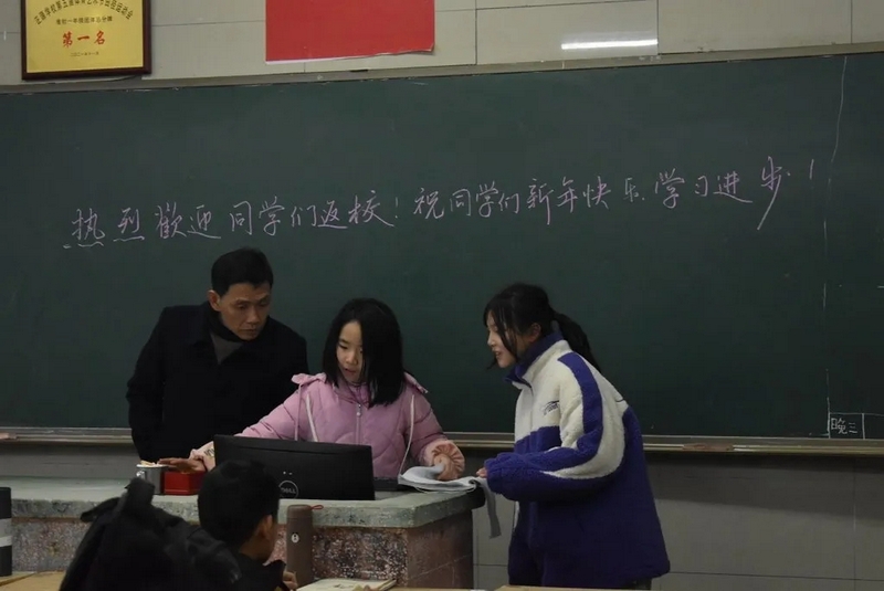 刚刚还在跟同学们互致问候,和蔼可亲的班主任,检查起寒假作业来却是丁丁卯卯,一丝不苟。“进校即思进取”的正源校训,开学第一天就要落到实处。