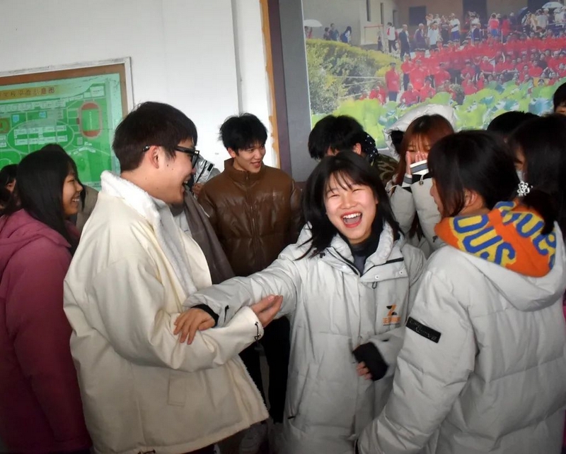 11:08分,学校财务总监、长沙正源负责人梁晓芬老师陪着13名长沙老师出现在南门太极池畔。隔着广场,大厅里的同学们开始欢呼鼓掌,远远地招手雀跃。他们是2022届高三艺考生,已经考完音乐类专业联考,36名去长沙集训过的学员,预估32人上线,上线率高达88%,将再创正源艺术高考新奇迹。