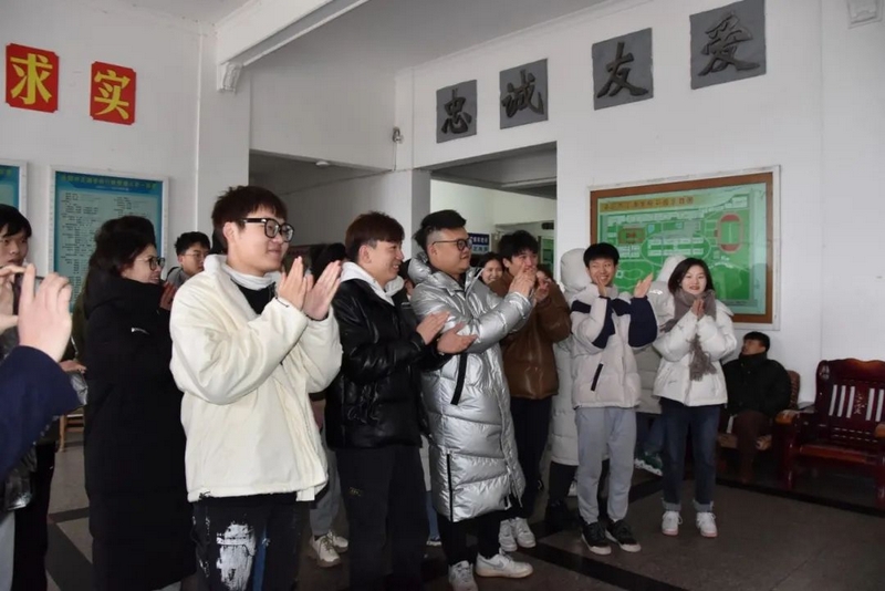 看到13位长沙老师一进大厅就跟学生们欢快地融成一片,罗校长不知从哪里找来了扩音话筒,给大家现场飙歌联欢。吴倩老师、刘洁同学一展歌喉现场清唱。扎实的唱功、婉转的歌声在大厅环绕回荡,大家又仿佛回到了去年长沙集训的场景,倍感亲切,深感怀念。